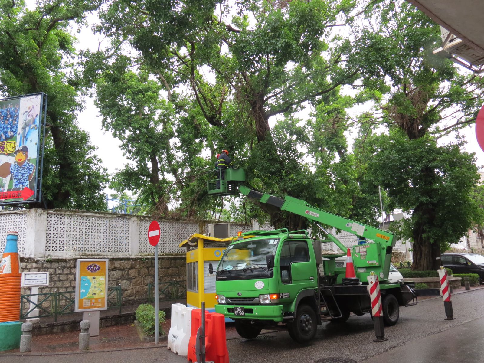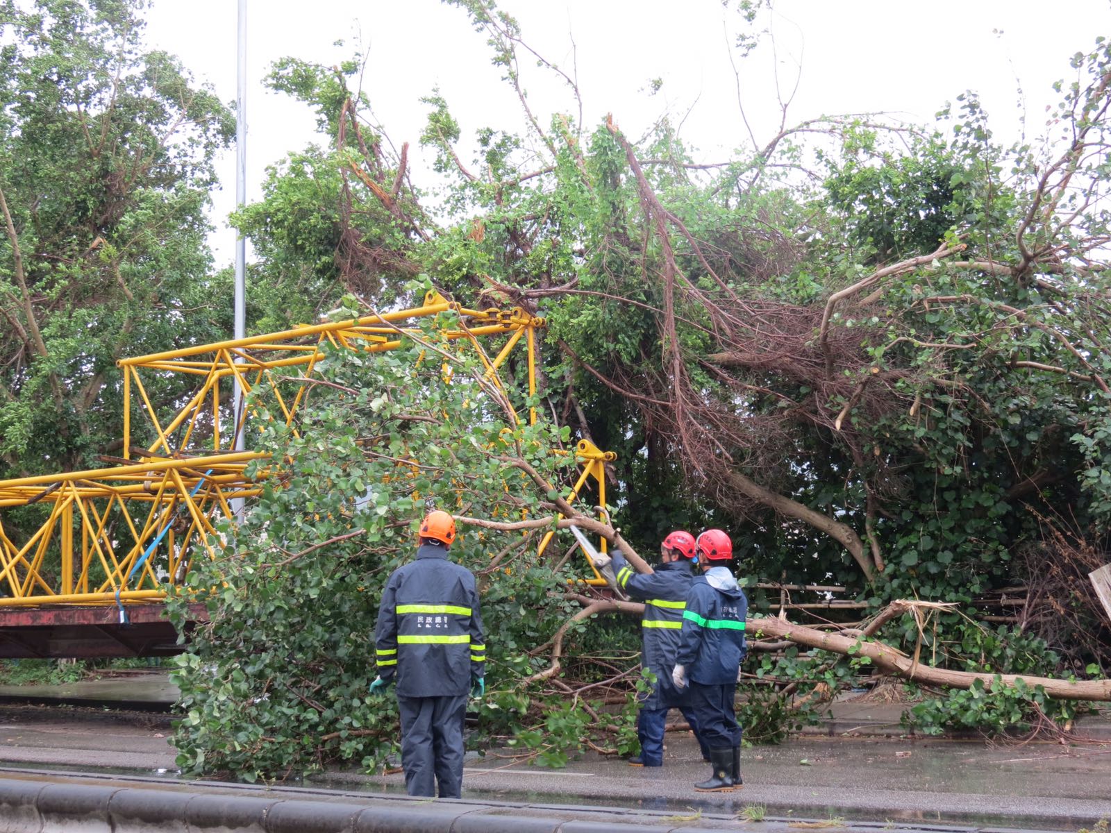 民政總署共接獲341棵樹木受損報告,其中大部分為枝條折斷,亦有樹木被強風吹倒,民署人員已作清理及扶正處理,但其中有14棵倒樹須緊急鋸除,以保障市民安全。