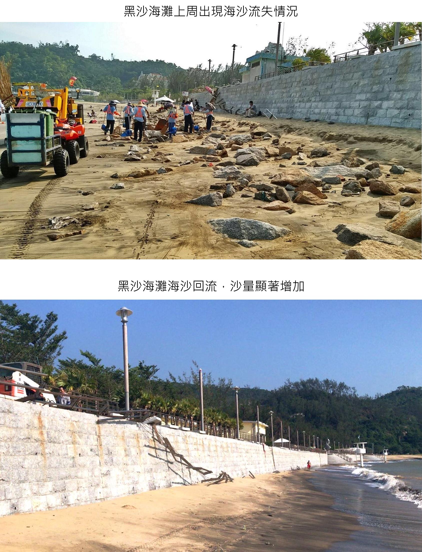 黑沙海灘的海沙已逐漸回流,沙量顯著增加,現時海灘大部分區域已沒有石頭外露,顯示沙量正逐漸回復正常。