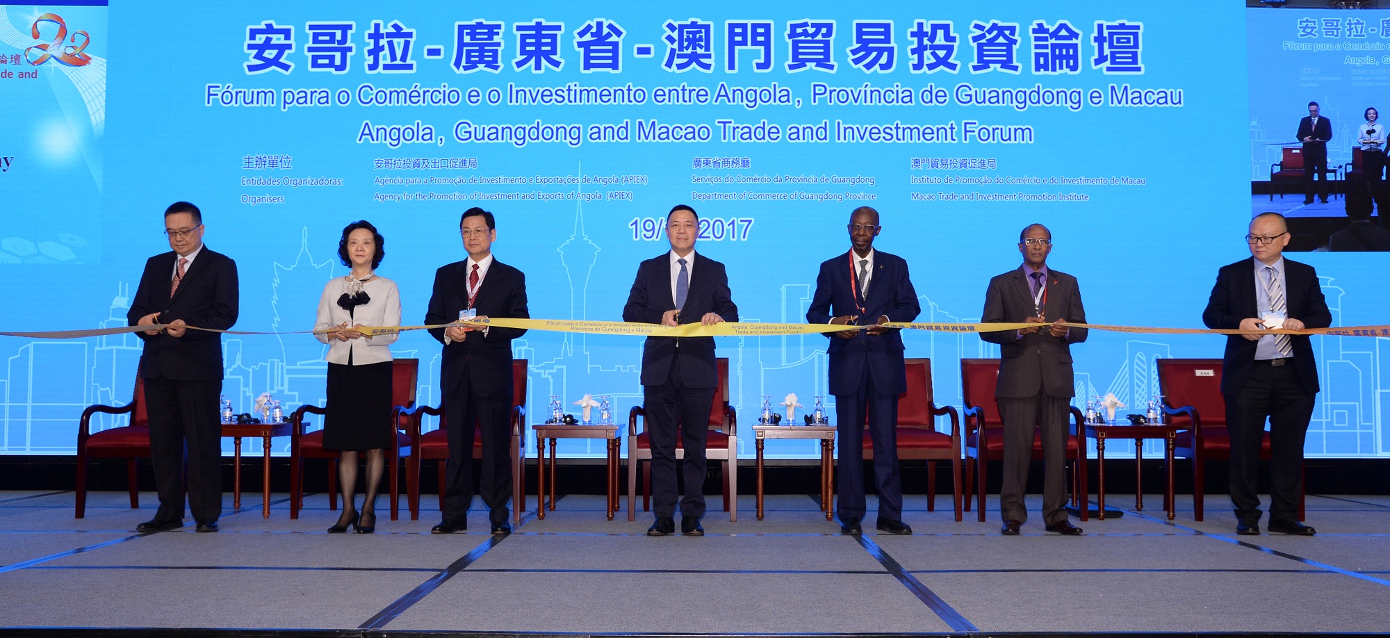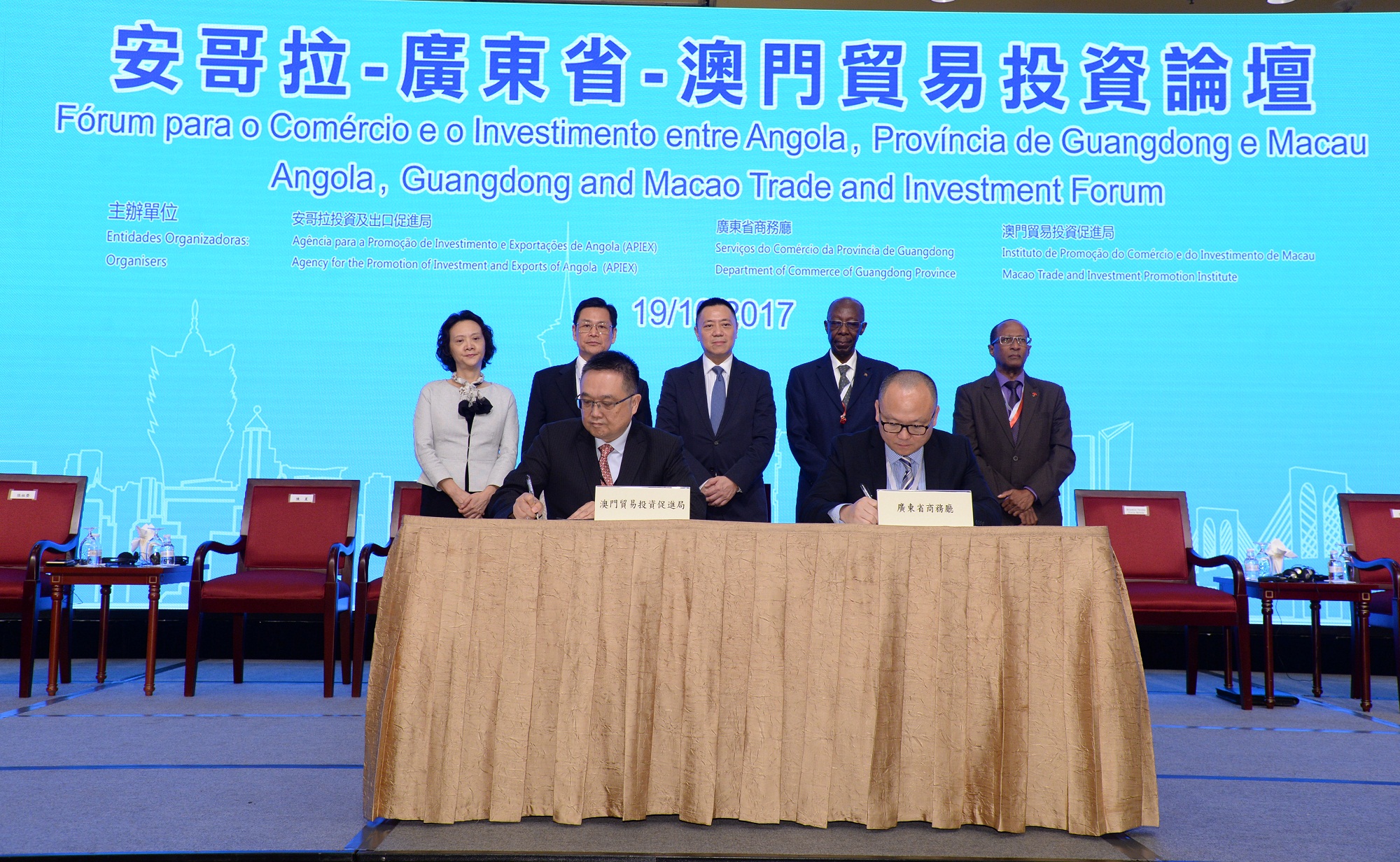 由安哥拉投資及出口促進局、廣東省商務廳、澳門貿易投資促進局主辦,安哥拉企業家聯合會、廣東省對外經濟合作企業協會協辦的“安哥拉—廣東省—澳門貿易投資論壇” 今(19)日舉行。作為第22屆澳門國際貿易投資展覽會(22nd MIF)重點活動之一,吸引了約250名企業家、政府官員及商協會代表出席,共同就安哥拉、廣東省、澳門三地深化經貿合作進行交流和探討。澳門貿易投資促進局主席張祖榮及廣東省商務廳副廳長陳越華,於論壇上簽署了《廣東省商務廳與澳門貿易投資促進局戰略合作備忘錄》,進一步深化粵澳兩地合作。