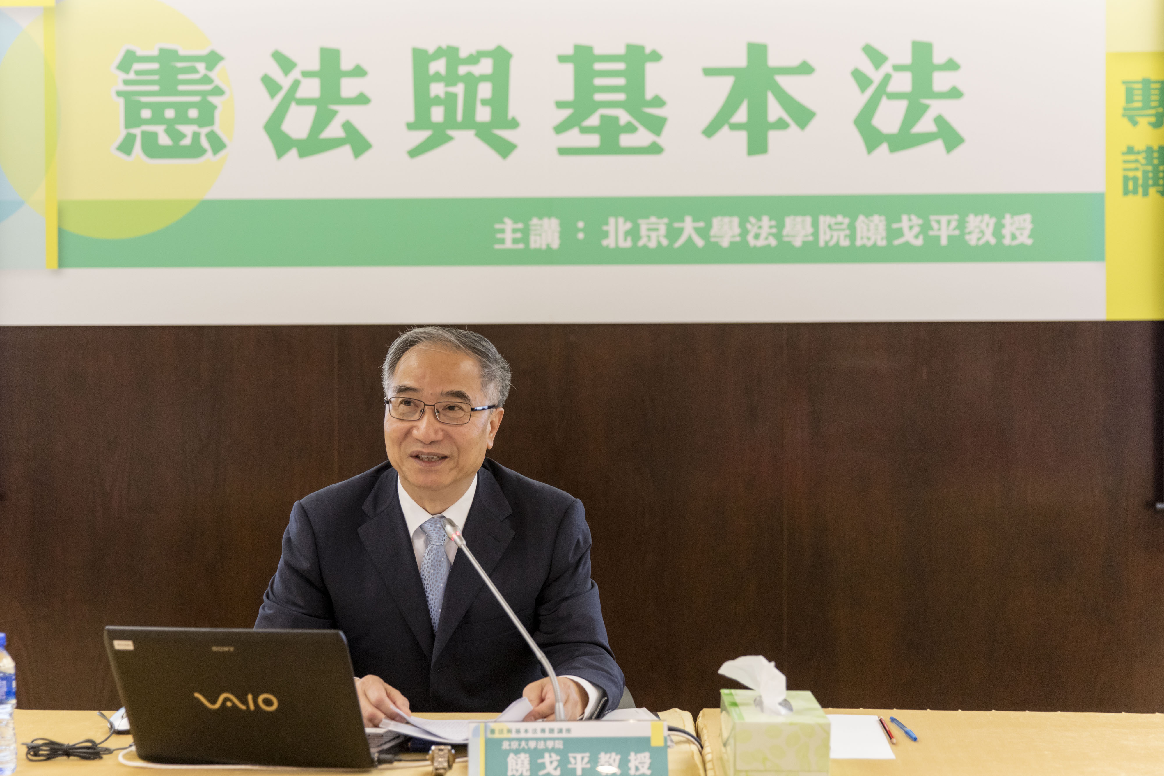 由法務局主辦的“憲法與基本法專題講座”,分別獲中華教育會及天主教學校聯會協助,合共舉辦了三場,有超過三百二十位中小學校長、主任及老師出席。饒戈平教授主要就國家《憲法》與《基本法》的關係作出了詳細講解,並在講座中提到了幾點問題,包括:《憲法》是什麼?國家《憲法》在“一國兩制”下的澳門特別行政區處於什麼法律地位?澳門有沒有尊重、遵守和維護《憲法》的義務?以及強調《憲法》在澳門適用的重要性等內容。饒教授指出:「澳門回歸十八年以來,從政府到學校以至社會各界,均非常重視《基本法》的推廣和教育,這是澳門能全面準確貫徹“一國兩制”,取得重大發展的關鍵因素。從現在看,應加強《憲法》的教育及傳播工作,包括樹立堅定的國家意識。“一國兩制”的深入實施,從法律上來說,就是樹立國家《憲法》觀念。」同時,他亦強調:「《憲法》不單單是《基本法》產生的依據和基礎,《憲法》同時與《基本法》一起構成了澳門的憲制性法律,《基本法》體現了《憲法》的一些內容,但不能取代《憲法》的作用,《憲法》是國家的根本法,凌駕於所有全國性法律之上,包括《基本法》。」最後他補充說:「期望澳門的教育工作者,能認識這些內容的重要性,在學校的通識教育和國民教育中加強國家《憲法》的教育,包括運用活潑的形式,把《憲法》的基本內容,主要的框架結構,以及《憲法》與《基本法》的關係等加入教材中。」出席的教育工作者在講座中提出了不同的問題作討論,包括在日常教學中,如何向學生講解“愛國愛澳”精神,以至習主席於十九大報告期間提及有關澳門的內容等,饒教授都作出了詳細回應。