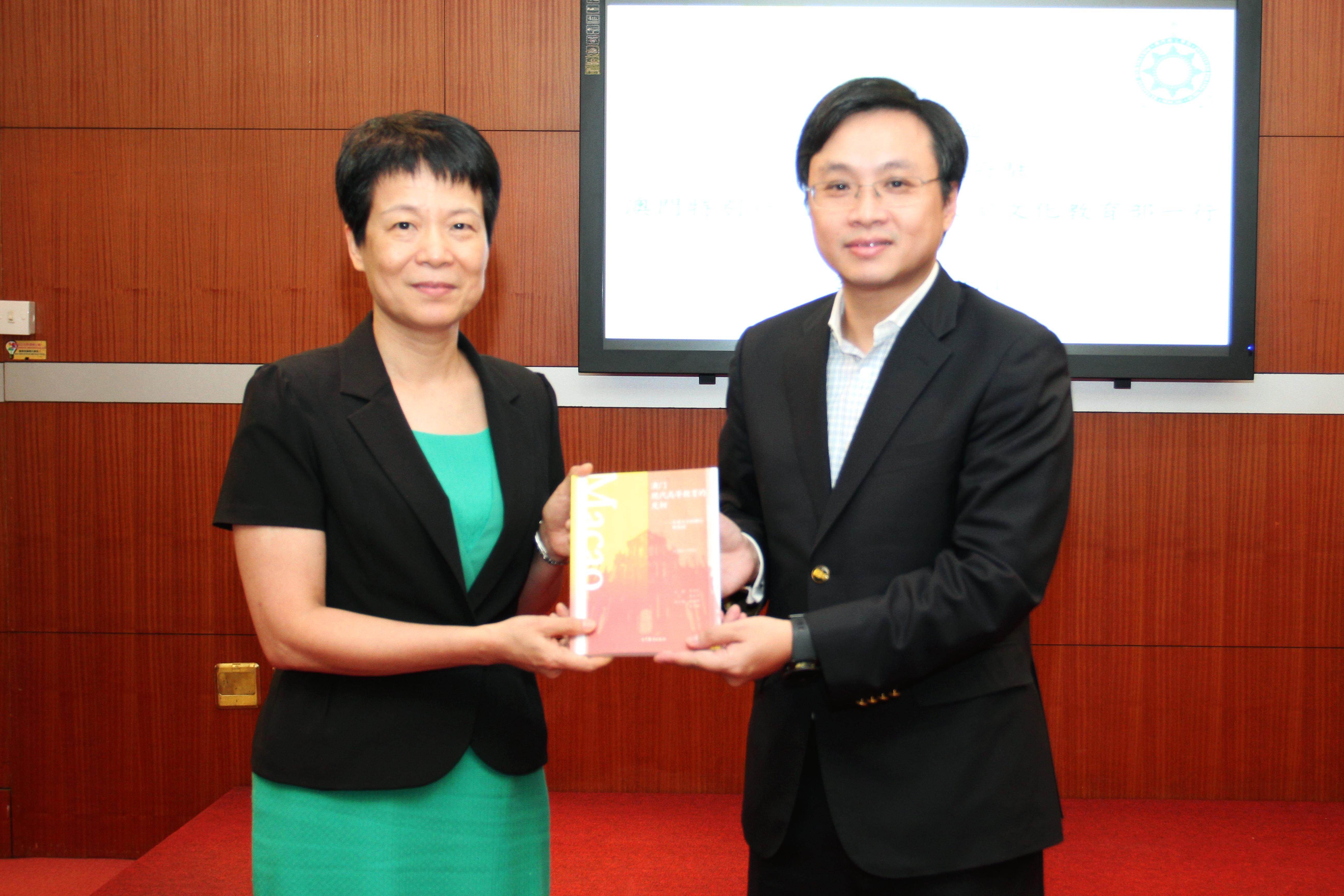 理工學院嚴肇基副院長歡迎徐婷部長一行的到來,感謝中聯辦及文化教育部一直以來對澳門理工學院的關心與支持。理工博彩教學暨研究中心王長斌主任介紹了中心的三個功能:一、致力推動區內博彩領域的學術研究;二、提供進修學位教育的機會;三、切實回應社會對培訓的需要,開辦更多娛樂場管理的培訓。中心現與中山大學合作培育博士後研究人員,未來將希望開辦博士及碩士學位課程,為澳門培育更多博彩娛樂管理人才。