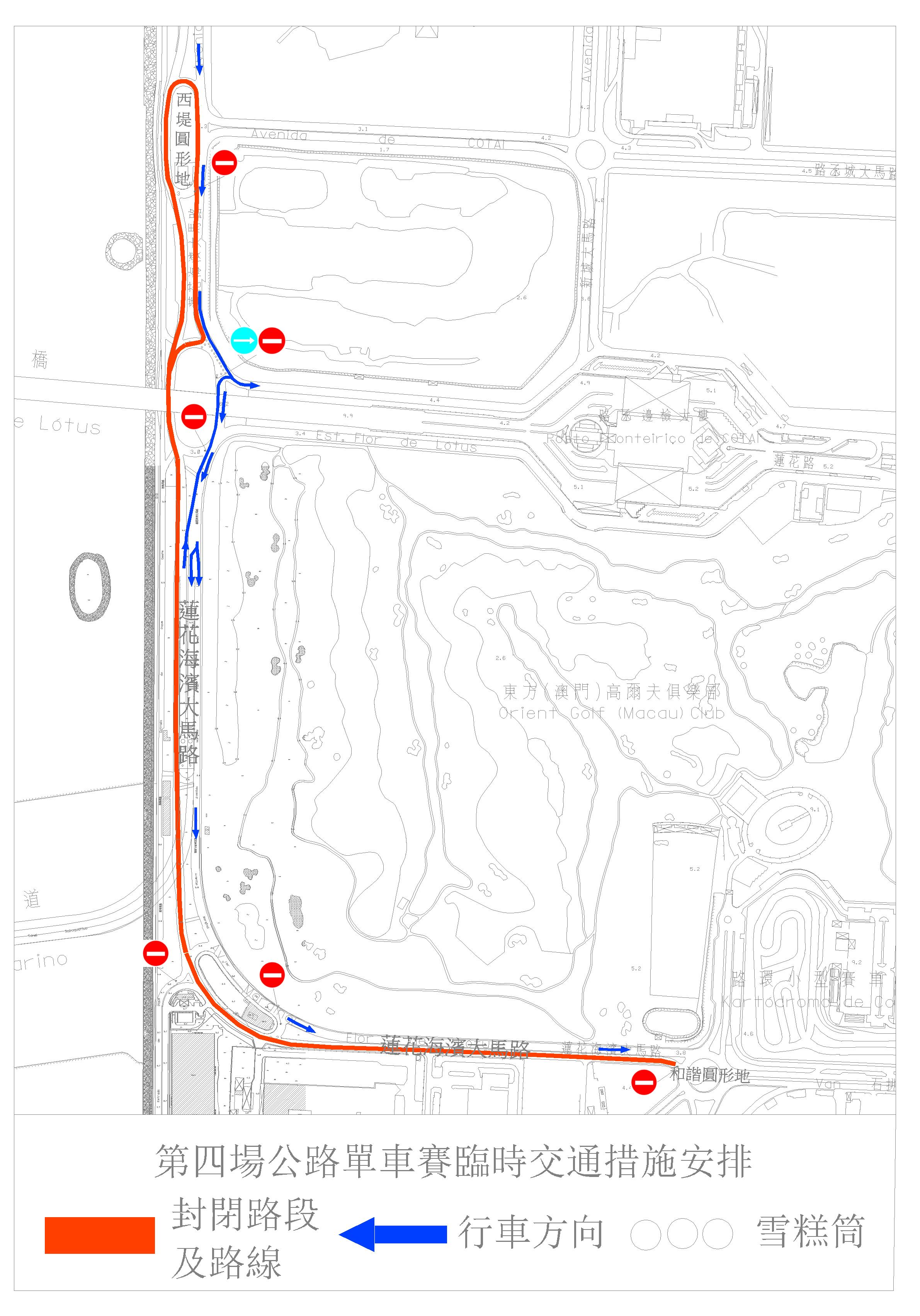 是次單車賽由西堤圓形地出發,途經蓮花海濱大馬路、和諧圓形地後,再沿蓮花海濱大馬路返回西堤圓形地。因應賽事需要,10月29日(周日)上午6時30分至中午12時30分,介乎西堤圓形地與和諧圓形地之間的一段蓮花海濱大馬路(近海一側的車行道)封閉交通,而另一側靠向生態保護區的蓮花海濱大馬路則實施單一方向行車,即該處只維持由奧林匹克游泳館圓形地往和諧圓形地的行車方向;賽事舉行當日(29日)上午6時至6時30分,蓮花海濱大馬路、西堤圓形地及和諧圓形地實施有限度通車。