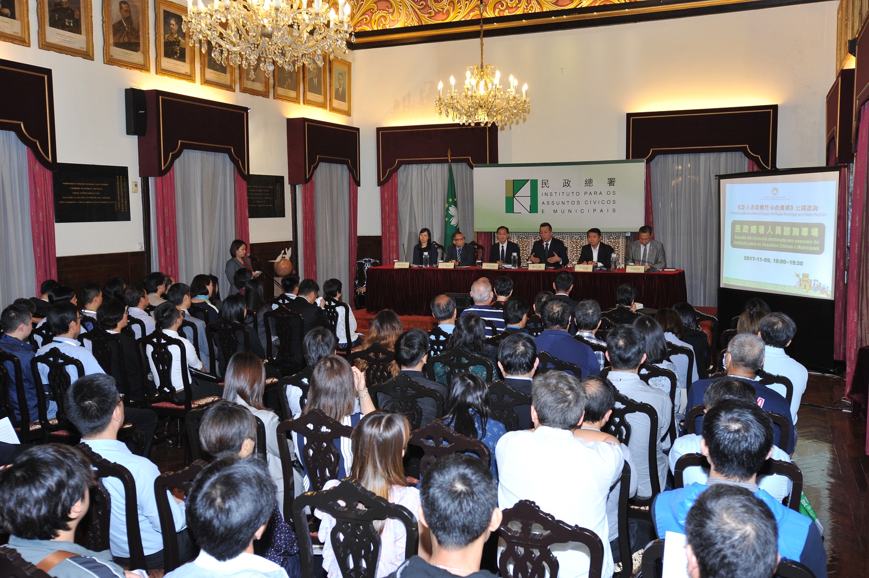 為讓民署人員對“設立非政權性市政機構"諮詢文本(下稱文本)有更深入的瞭解,民政總署聯同行政公職局代表於十一月九日下午六時,在民政總署大樓禮堂舉辦專題講解會,聽取民署各部門代表對有關事宜的意見及問題,政府代表亦就意見作出說明及回應,近百名民署主管及人員代表出席,以協助將相關資訊傳達予其他人員。