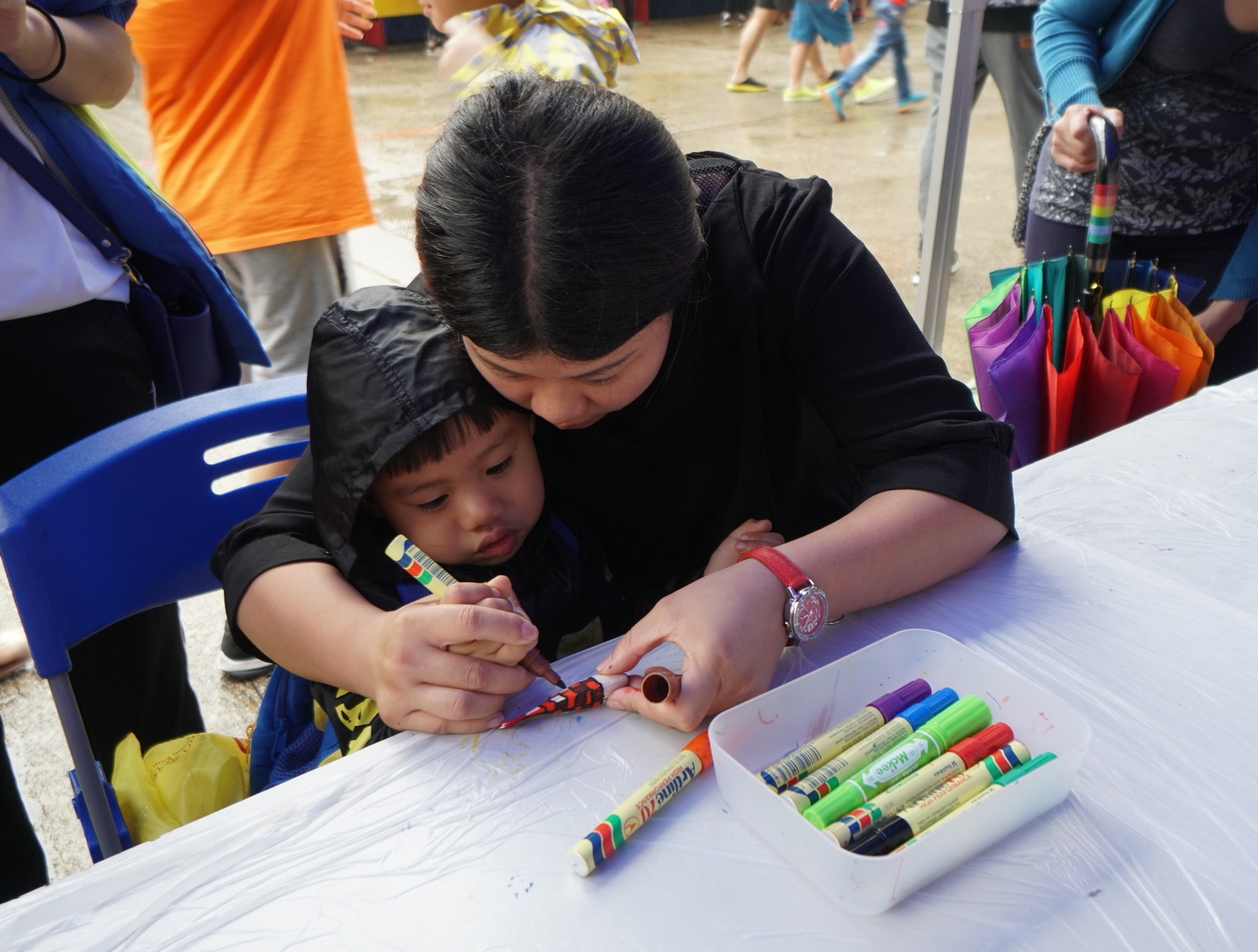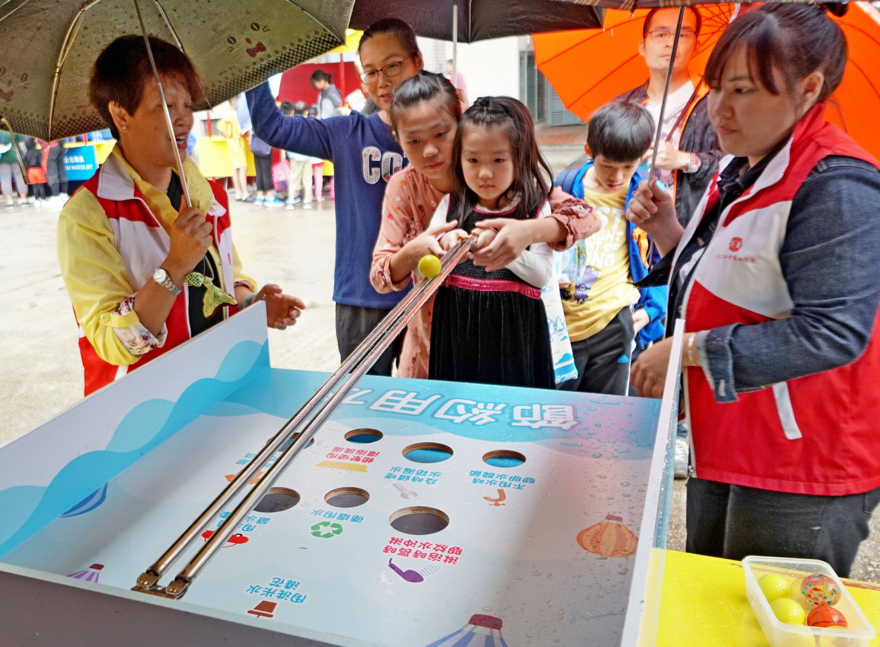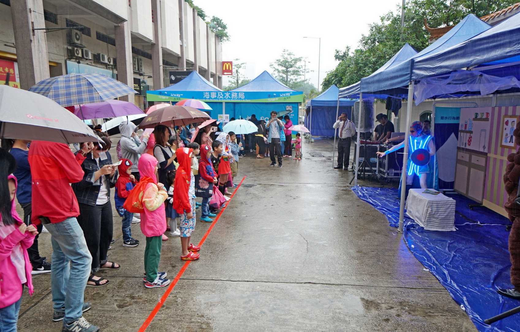 “海安全‧水優質”社區巡禮現場設有多個以航行安全、沙灘旗號及清潔、節約用水、認識鹹潮、維護管理樓宇自來水系統等為主題的攤位遊戲和工作坊,還有“海安全‧水優質”真人版遊戲棋以及指南魚工作坊,有趣互動之餘,大人和小朋友亦能從玩樂中學習到海事及節水知識。期間更上演了精彩的節水話劇,深受小朋友喜愛的“威水超人”和“水汪汪姐姐”現身和大家玩節水遊戲和派禮物,吸引了眾多小朋友踴躍參與。