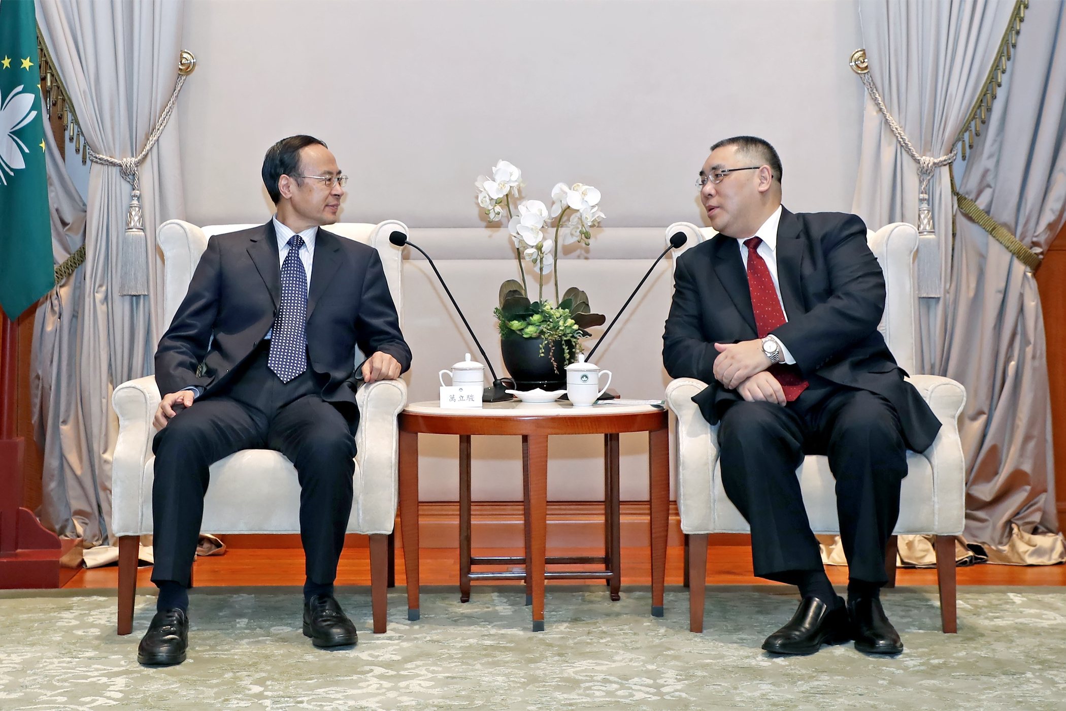 行政長官崔世安今(13)日上午在政府總部會見全國僑聯主席萬立駿,雙方就加強澳門僑界參與助力“一帶一路” 建設、發展粵港澳大灣區和青年工作等議題交換意見。