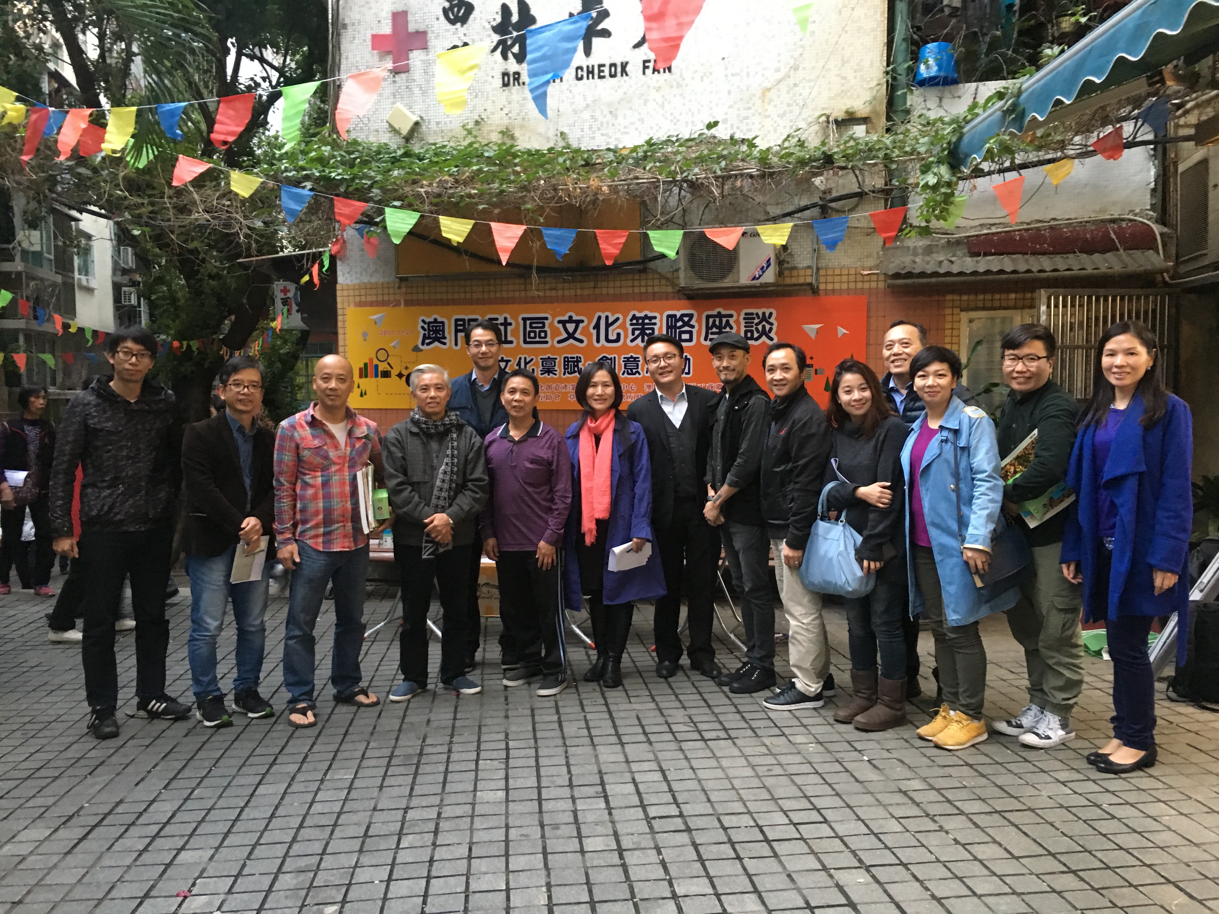 “澳門社區文創策略座談”2017年11月21日(星期二)下午假座快艇頭里永福圍休憇區舉行。座談會由理工學院文化創意產業教學暨研究中心、澳門中區南區工商聯會、果欄六街區坊眾互助會、草堆六街區坊眾互助會合辦,參與者熱烈討論社區結合文創產業的發展願景。