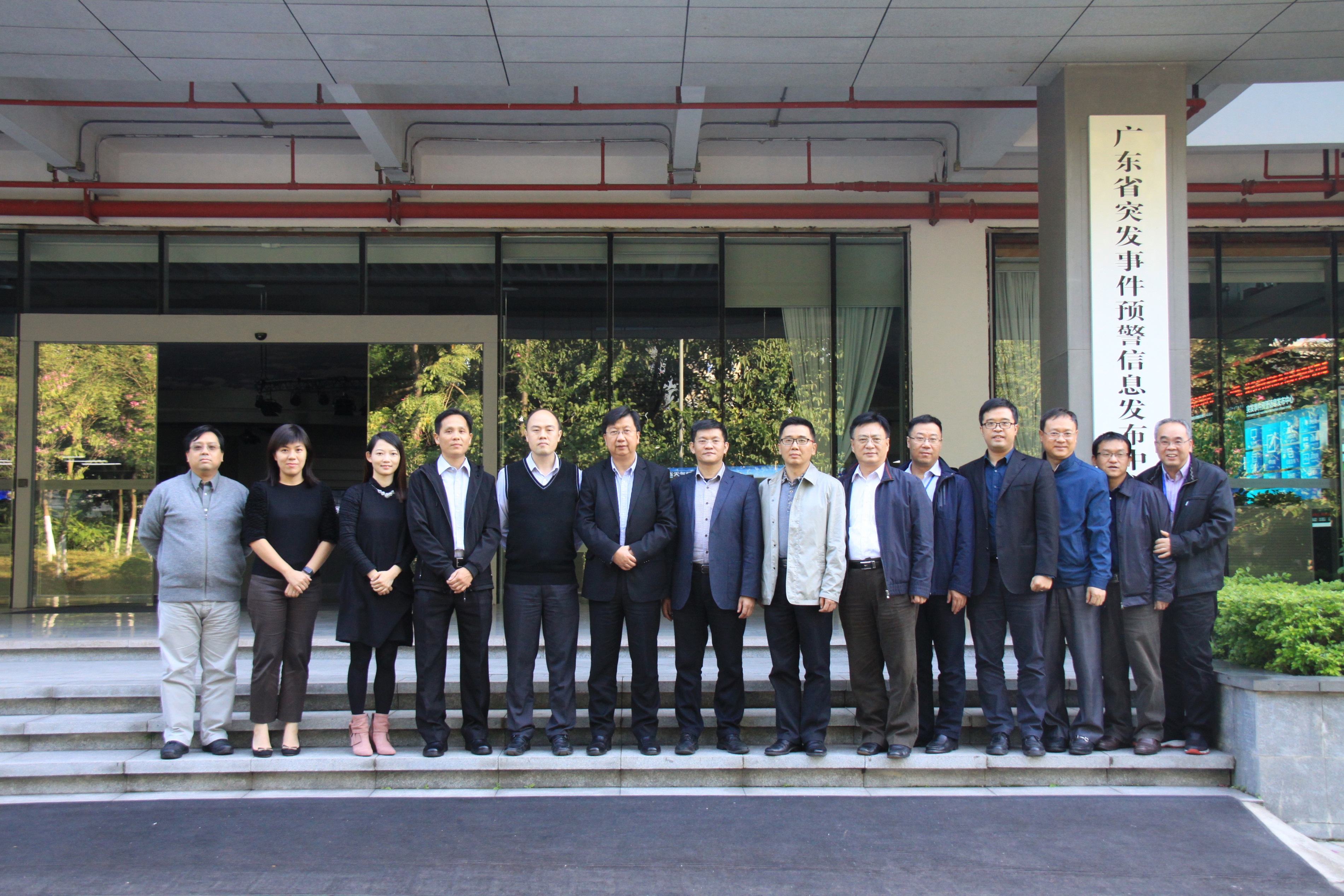 陪同廣東省氣象局莊旭東局長會面的有顏文勝辦公室主任、監測與網絡處張立波處長、氣象台胡勝副台長和氣象探測數據中心張金標副主任等人。