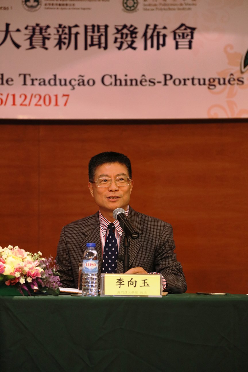 第二屆世界中葡翻譯大賽新聞發佈會12月6日(星期三)下午四時在澳門理工學院舉行,由高等教育輔助辦公室蘇朝暉主任、澳門理工學院院長李向玉教授、澳門理工學院副院長嚴肇基教授及第二屆世界中葡翻譯大賽學術組組長李長森教授主持,介紹比賽章程及詳情。蘇朝暉主任在新聞發佈會上指出澳門作為中葡雙語人才培訓基地,高等教育輔助辦公室一直支持澳門的高等院校推動中葡雙語人才。去年在理工學院的倡議下,聯手舉辦首屆世界中葡翻譯大賽,成績有目共睹。蘇朝暉主任期望第二屆世界中葡翻譯大賽能夠吸引更多隊伍參賽,再創佳績。李向玉院長致辭時表示澳門理工學院一直著力於中、葡雙語翻譯的教學工作,舉辦中葡翻譯大賽是為了加強世界範圍內高等院校學生之間中葡語言翻譯技術的交流、更好地培養中葡翻譯專才、發揮中葡翻譯“百年老校”的優勢,為葡語的教學和推廣做出應有的貢獻。李向玉教授預祝第二屆世界中葡翻譯大賽圓滿成功。