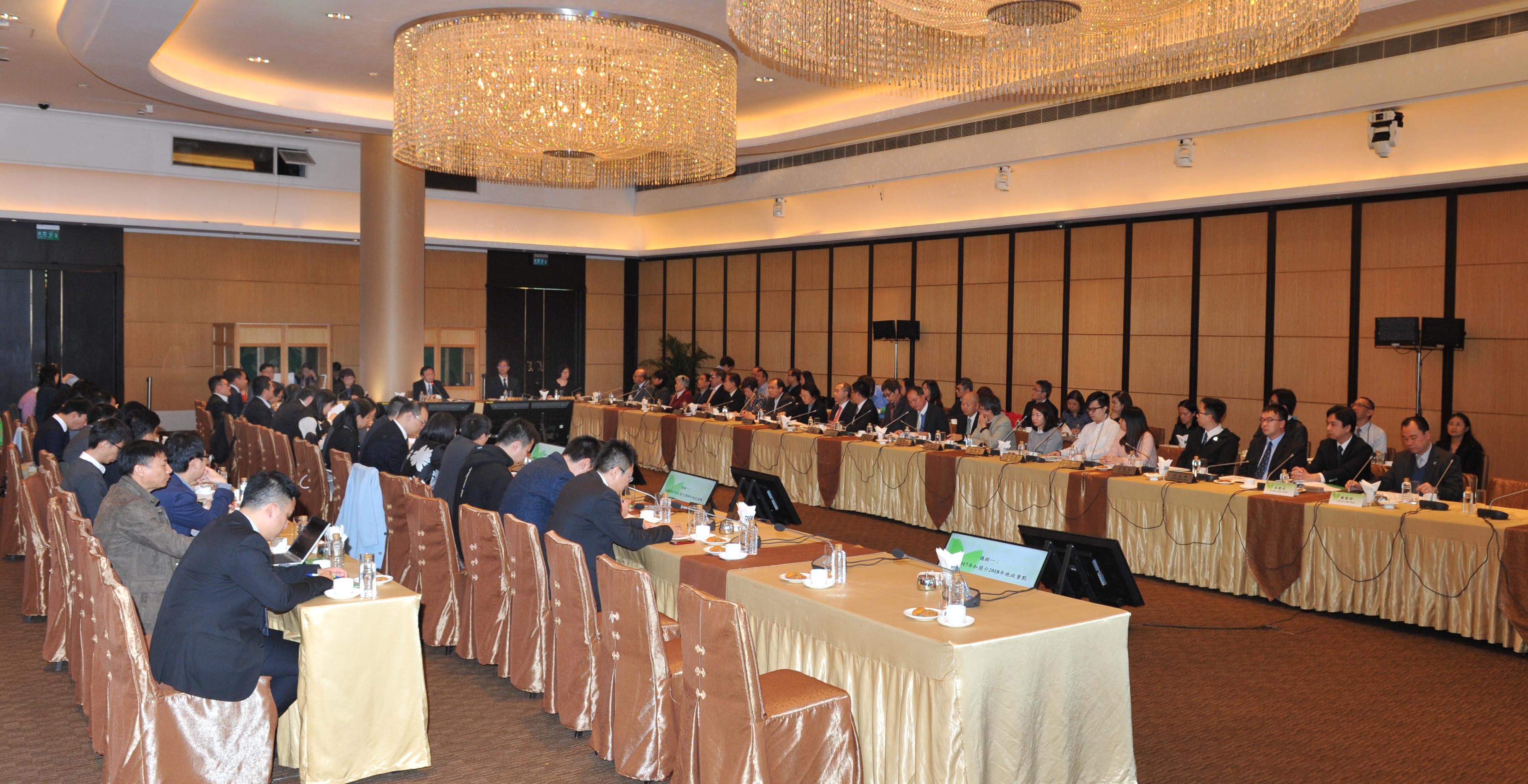 會上,由兩會副主席梁勵引介各項議程,接着由教青局教育研究暨資源廳廳長黃健武及青年廳廳長陳旭偉分別回顧2017年和簡介2018年非高等教育及青年事務的施政重點工作。黃健武指出2017年特區政府與社會各界共同努力下,非高等教育方面得到了長足的發展,重點加大教育資源的投放,擴展了免費教育系統的覆蓋率,“藍天工程”的規劃得以有序落實,課程改革邁向了中學教育階段,並推出第三階段“持續進修發展計劃”(2017-2019年),以配合經濟產業多元發展及營造學習型社會;2018年繼續貫徹推進《澳門特別行政區五年發展規劃(2016-2020年)》和《非高等教育發展十年規劃(2011-2020年)》的各項相關任務,積極優化本澳的教育環境,致力提升本地的教育素質。在青年事務工作方面,陳旭偉表示有賴社會各界的支持、青年的參與,讓2017年青年事務不論在政策規劃、配合國家和社會發展方向、支持社團發展、讓青年了解國情區情、身心健康、展現才華等工作上都取得一定的成果;2018年將繼續推進《澳門青年政策(2012-2020年)》的落實,一方面實施“齊心同行計劃”,加深家國情懷體驗,鼓勵青年關注和參與社會事務,亦著重青年身心健康發展,同時,開展多項提升青年創新創業能力的相關工作。