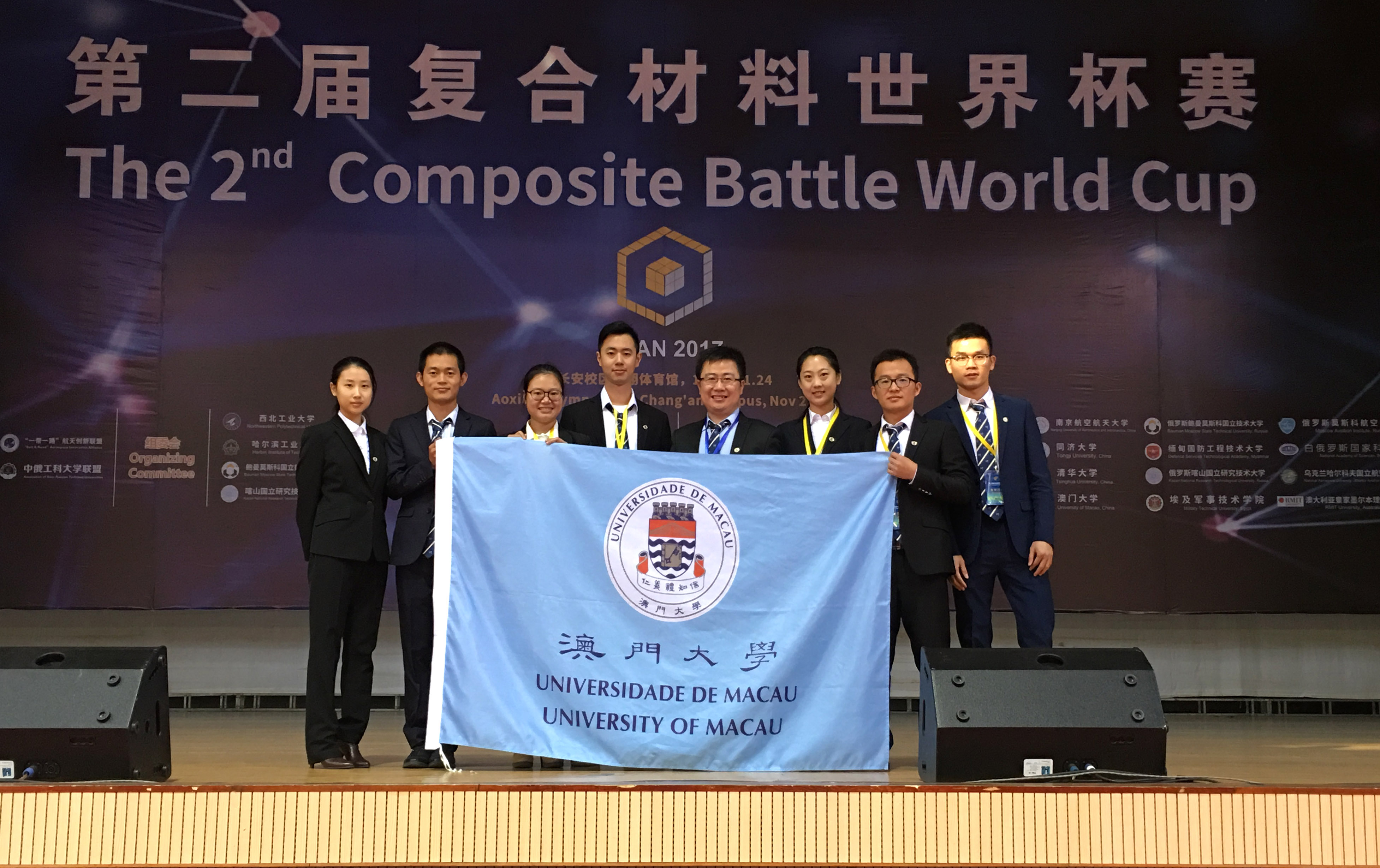 澳門大學應用物理及材料工程研究所博士研究生組隊,參與“第二屆複合材料世界盃賽",與來自世界各地高校共16支優秀隊伍角逐,考驗對複合材料領域的綜合能力。澳大參賽隊伍在整場強手林立的學術報告競賽中,獲集體總分二等獎,突顯了澳大研究生在材料科技創新方面的科研實力。