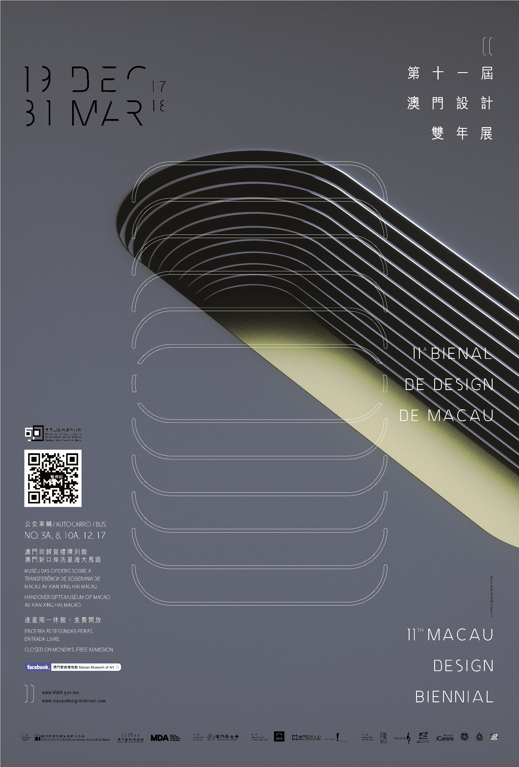 由文化局澳門藝術博物館及澳門設計師協會聯合主辦、澳門基金會協辦之“第十一屆澳門設計雙年展”將於十二月十八日下午六時三十分在澳門回歸賀禮陳列館專題展覽廳開幕。展覽於十二月十九日至二零一八年三月三十一日對外展出,歡迎廣大市民到場參觀。