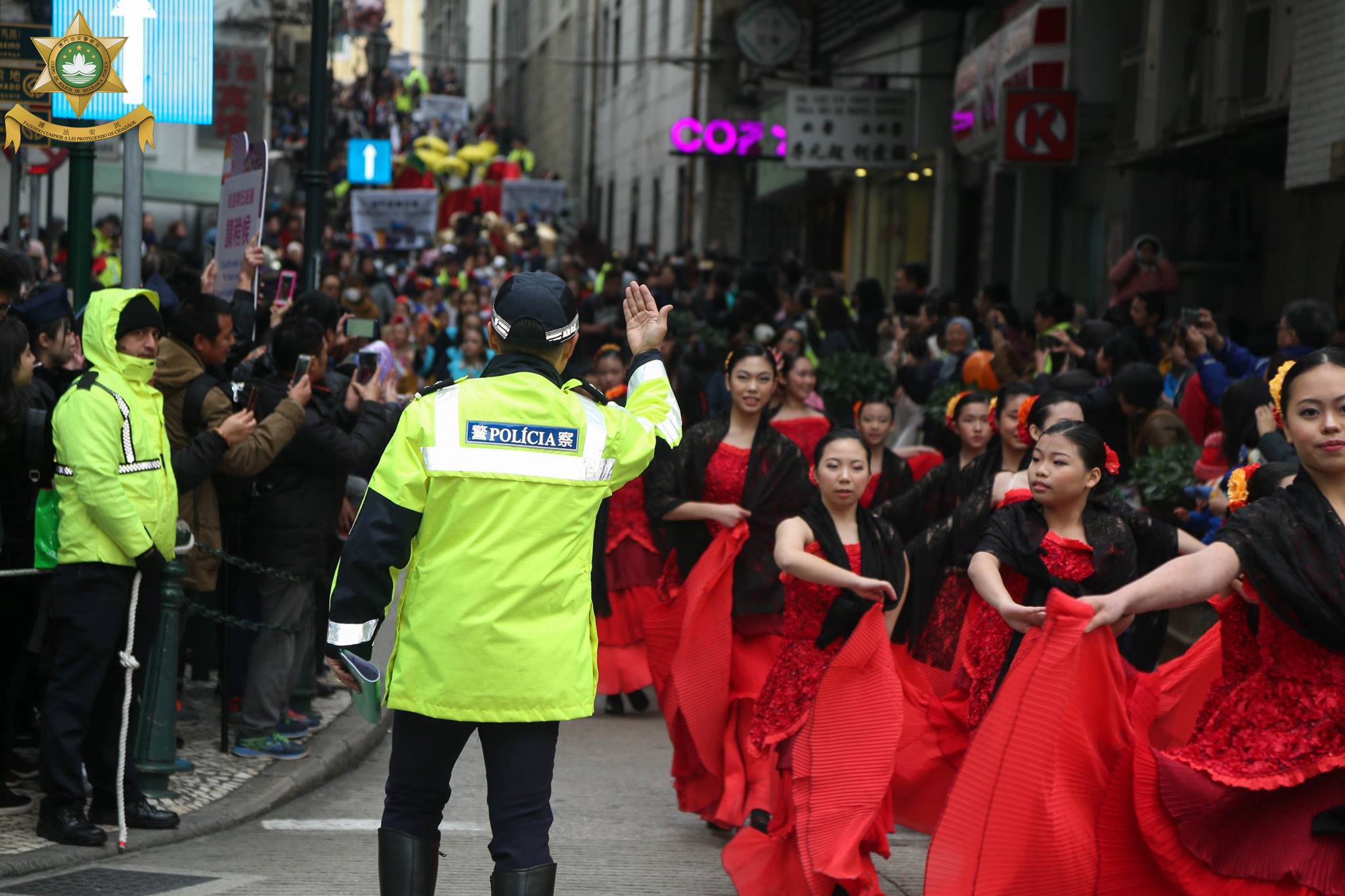 雖然澳門國際幻彩大巡遊舉行當天氣温顯著下降,但現場氣氛毫不退減,表演者與圍觀的市民和旅客均熱情互動、投入大巡遊活動之中。當大家欣賞各位表現者華麗服飾、精湛表演及生動木偶時,治安警察局人員亦堅守崗位,在巡遊路線增派人員維持秩序及疏導交通,確保大家能在安全及有序的情況下盡情享受精彩耀目的表演,渡過一個愉快的假日。