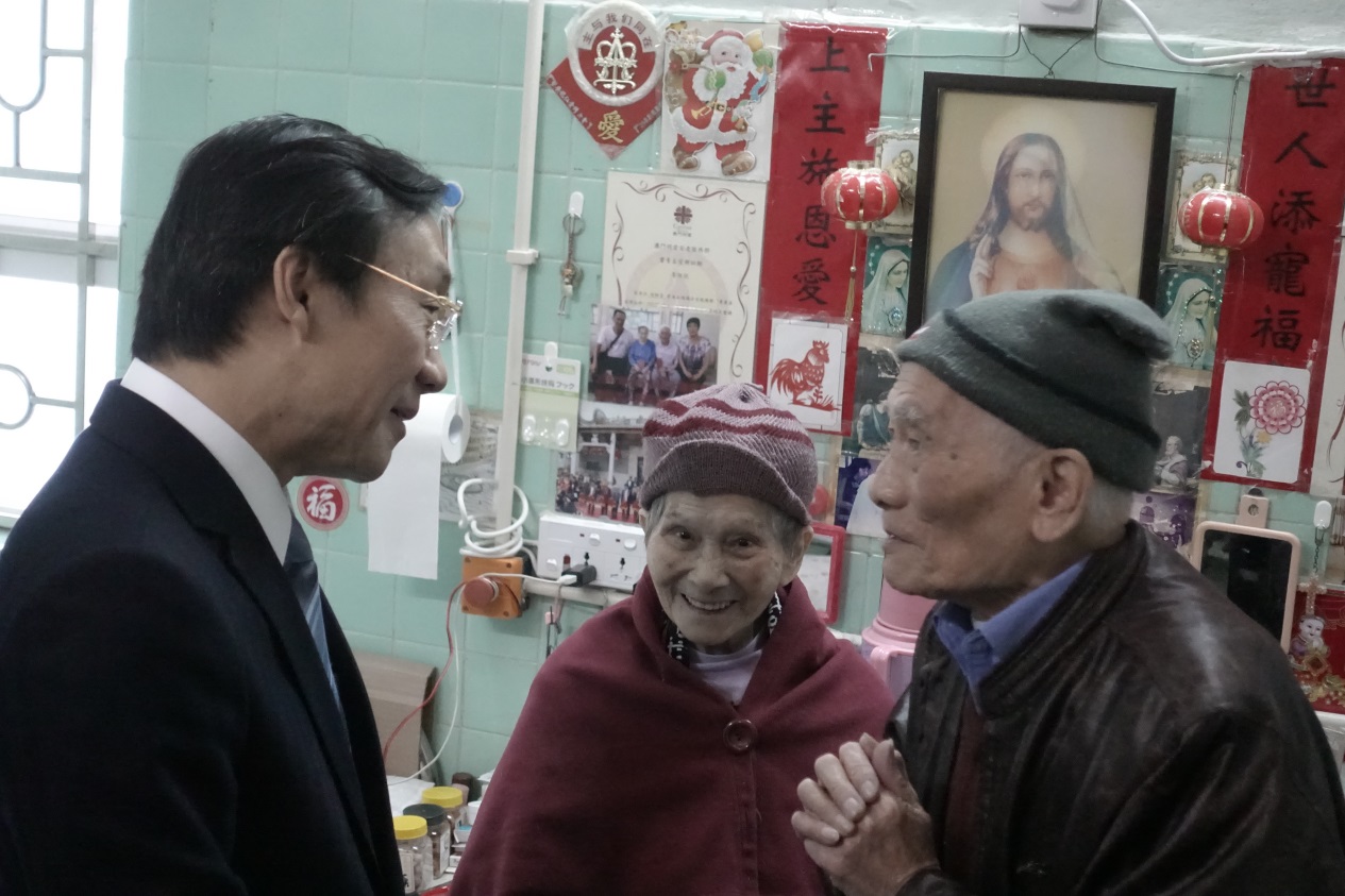 農曆新年將至,社會文化司譚俊榮司長近日走訪了澳門明愛轄下3間受社會工作局資助的社會服務設施,包括伯大尼安老院、聖類斯公撒格之家、聖瑪嘉烈中心,探望長者和殘疾人士,表達特區政府對弱勢社群的關懷及節日問候。
