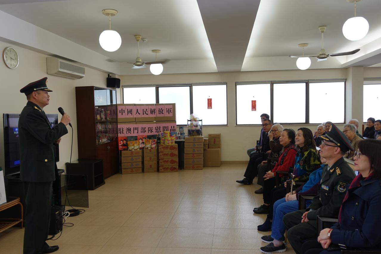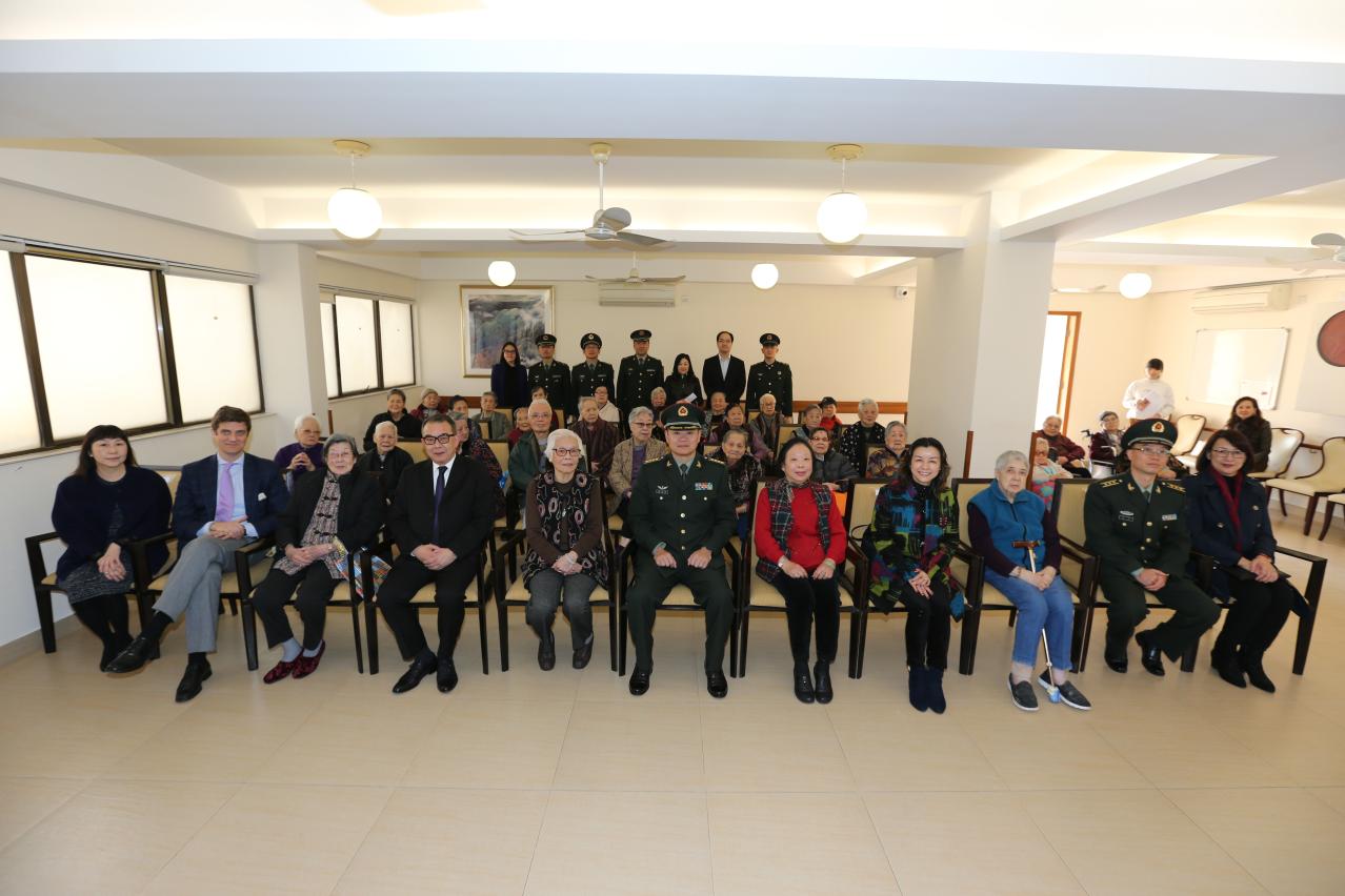 在中華民族傳統新春佳節來臨之際,駐澳門部隊副參謀長高志軍大校與部分官兵代表,在澳門特別行政區政府社會工作局黃艷梅局長和工作人員的陪同下,於2月13日下午走進澳門“仁慈堂”安老院慰問長者。