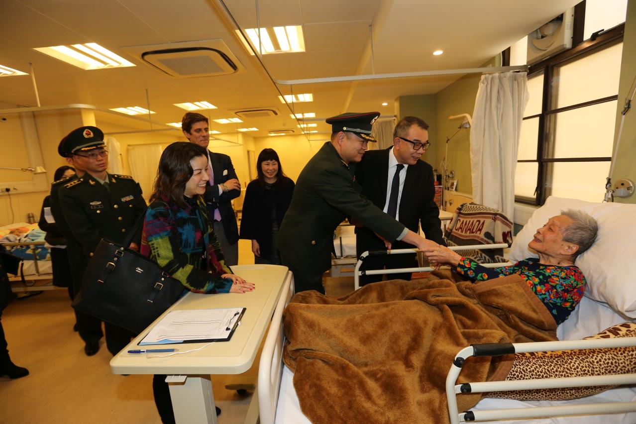 駐軍官兵代表和社工局人員參觀了“仁慈堂”院舍並向安老院致送果籃、奶粉、麥片等慰問品。社工局黃局長和駐軍高副參謀長等一行人還專程看望慰問臥床長者,向為澳門建設發展做出貢獻的長者表示敬意。