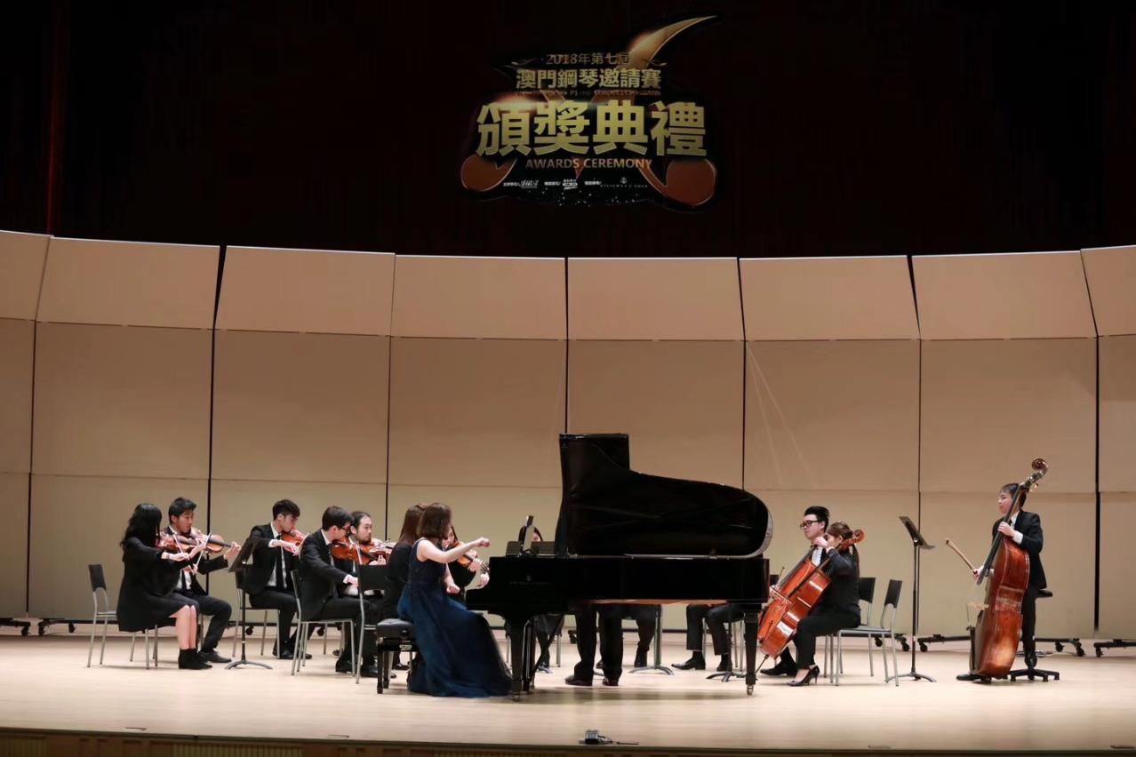 澳門理工學院藝術高等學校音樂課程表演專業四年級學生謝欣,在上週剛結束的“2018第七屆澳門鋼琴邀請賽”中,憑著出色的發揮,在眾多參賽選手中脫穎而出,勇奪“專業青年組金獎”,指導老師是理工藝校音樂課程郭家豪博士。在比賽的頒獎典禮上,謝欣更獲邀與曾獲頒大英帝國勳章的著名英國指揮家Nicholas Michael Smith及其帶領的澳門精英青年樂團,假澳門大學合作演出浪漫派法國作曲家聖桑(Camille Saint-Saëns)的降A大調隨想圓舞曲,作品76,備受場上嘉賓和觀眾報以熱烈的掌聲及好評。