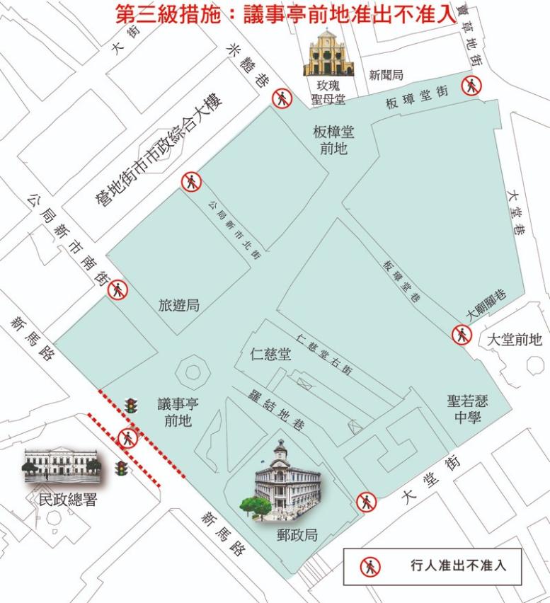 當新馬路及議事亭前地人群出現大範圍擠擁時,在第二級的基礎上,議事亭前地至玫瑰堂整片區域將會視乎實際情況採取局部或全部封閉,屆時在區域內的人群可以離開,區域外的人士不可內進。