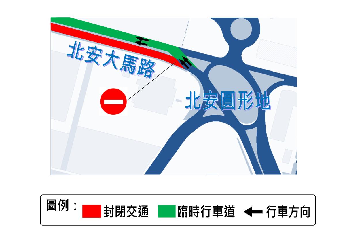 因開展下水道整治工程,2月26日(周一)至3月14日(周三),介乎氹仔北安圓形地與永勝街之間的一段北安大馬路封閉交通,由澳門機場往友誼大橋方向的車輛可取道北安大馬路中間車道行駛。