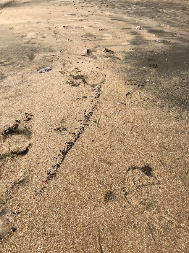 黑沙海灘沙面出現黑色粒狀異物