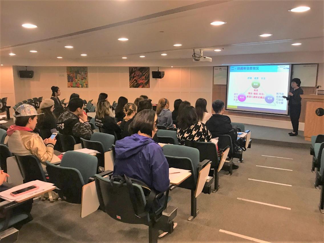 介紹會由台灣紡拓會時尚行銷處陳美貞女士主講,她介紹了紡織業的發展現況,除了滿足人們對流行時尚、文化生活的追求外,也特別關注環保機能,以達到無污染、低耗能、可回收等為最終目標。隨著科技發展及對生活的應用,功能布料已逐漸廣泛用於各類日常服裝,特別是運動和休閒衣服類,功能布料的特質──吸濕速乾、抗紫外線、儲熱保溫、透濕防水──令服裝有更大的附加值,設計服裝時善加利用適當的布料都可為產品增值,提高檔次,提升競爭力。陳美貞並講解了最新的環保布料的材質和特點,以及在設計上,現時應用這兩類布料製作服裝時需注意之處。