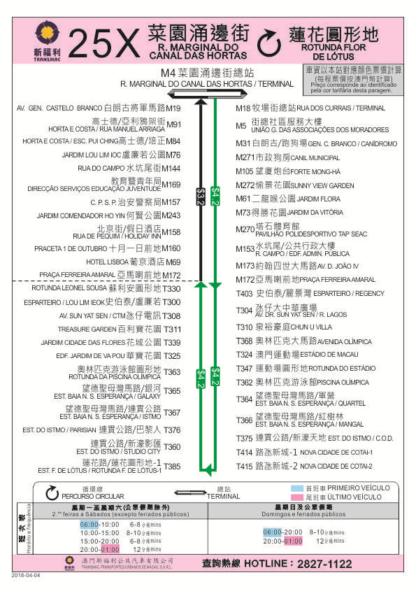隨著工程踏入尾聲,在考慮站點運作條件及巴士運轉現況後,由4月4日(周三)首班車起,25X路線由“菜園涌邊街總站”開出後,新增停靠“牧場街總站”後按原線行駛。