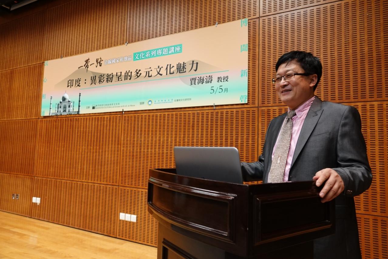 由文化局主辦、澳門科技大學社會和文化研究所協辦的二零一八年度“博聞新聲 民心相通——一帶一路沿線國家和地區文化系列專題講座”第三場已於日前(五月五日)圓滿舉行,講座主題為“印度:異彩紛呈的多元文化魅力”,由暨南大學中印比較研究所所長賈海濤主講。