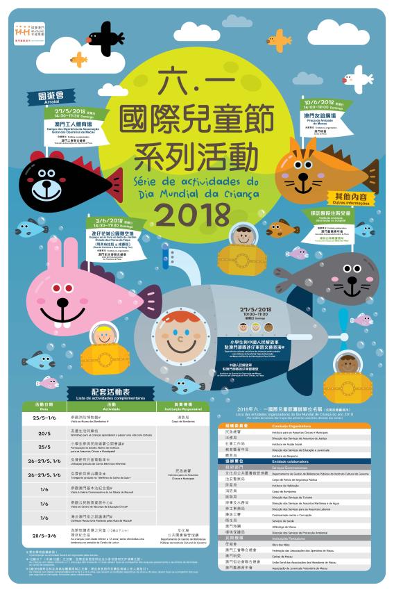 系列活動由社會工作局、法務局、民政總署、教育暨青年局與體育局所組成的“2018年六.一國際兒童節組織委員會”主辦,協辦單位包括:文化局—公共圖書館管理廳、治安警察局、房屋局、消防局、旅遊局、海事及水務局、勞工事務局、廉政公署、衛生局、澳門海關、環境保護局、母親會、澳門工會聯合總會、澳門明愛、澳門街坊會聯合總會、澳門義務青年會。
