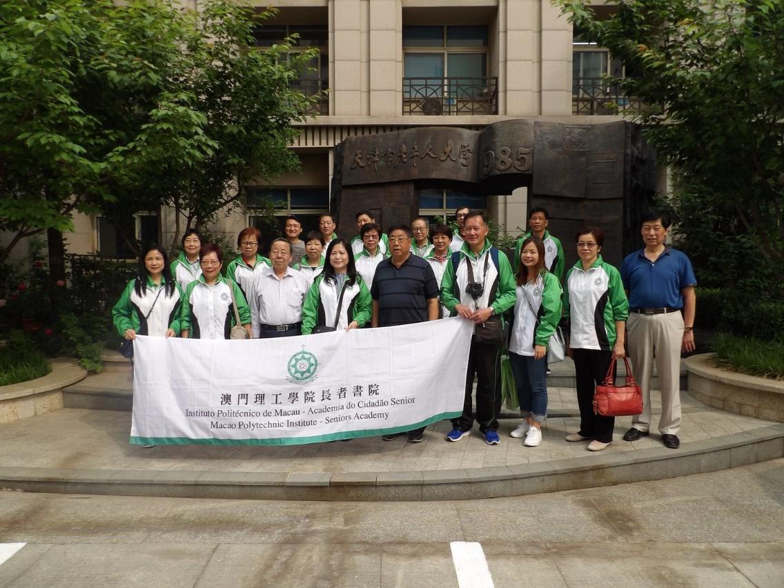 澳門理工學院長者書院學生會一行十五人,日前(五月十四日)在校長林韻薇的帶領下,前往天津市老年人大學參觀交流,獲該校常務副校長何寶忠、副校長高秀林等領導的熱情接待,參觀了校舍設施及觀摩課堂,並進行了座談,收獲豐富。