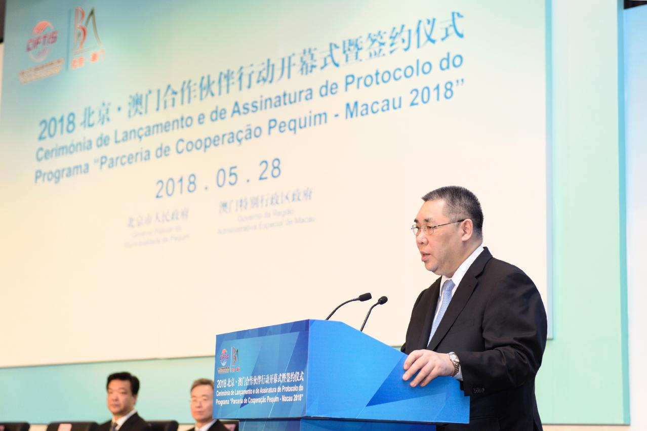 崔世安致辭時表示,京澳兩地交往歷史悠久,合作基礎穩固。在兩地政府的大力推動和社會各界的共同努力下,自2016年“京澳合作伙伴行動”啟動以來,兩地合作機制進一步密切,取得了豐碩的合作成果。