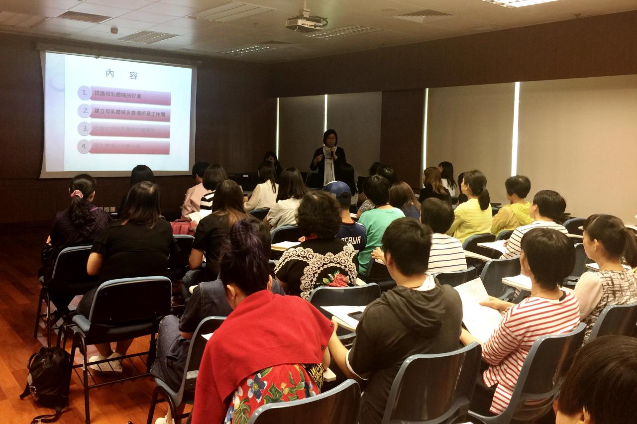 為配合特區政府推動母乳餵哺的政策,並鼓勵各社會服務設施設置母乳餵哺室及優化有關服務內容,社會工作局於6月1日為約40間社會服務設施/社團舉行了「母乳餵哺專題講座」,合共約45人參與。