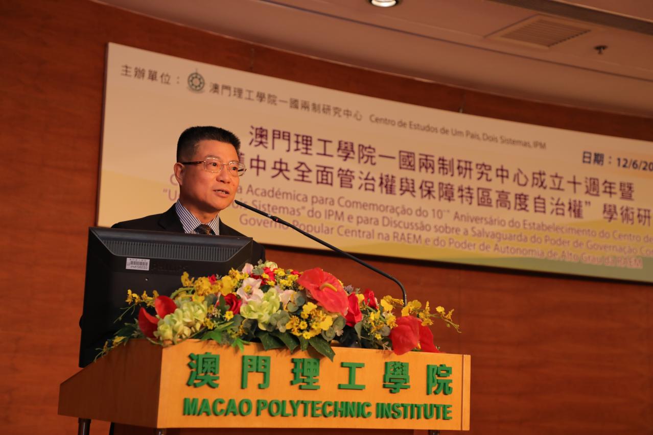 理工學院值本月十二日一國兩制研究中心成立十周年之際,舉辦題為“維護中央全面管治權與保障特區高度自治權”學術研討會,邀請到近二十名港澳內地相關研究部門、高校的專家學者發表學術論文,共同專題探討“一國兩制”在澳門特區的成功實踐,探討貫徹落實《澳門基本法》,確保中央對特區在全面管治權行使有效的基礎上,充分保障特區的高度自治權的課題。