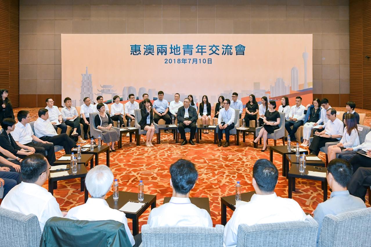 正在惠州市訪問的行政長官崔世安及特區政府代表團今(10)日下午出席“惠澳兩地青年交流會”,聽取“千人匯”匯員與惠州市青聯代表就粵港澳大灣區發展與青年機遇進行交流。崔世安勉勵年青人要開放思想,裝備自己,投身粵港澳大灣區建設。