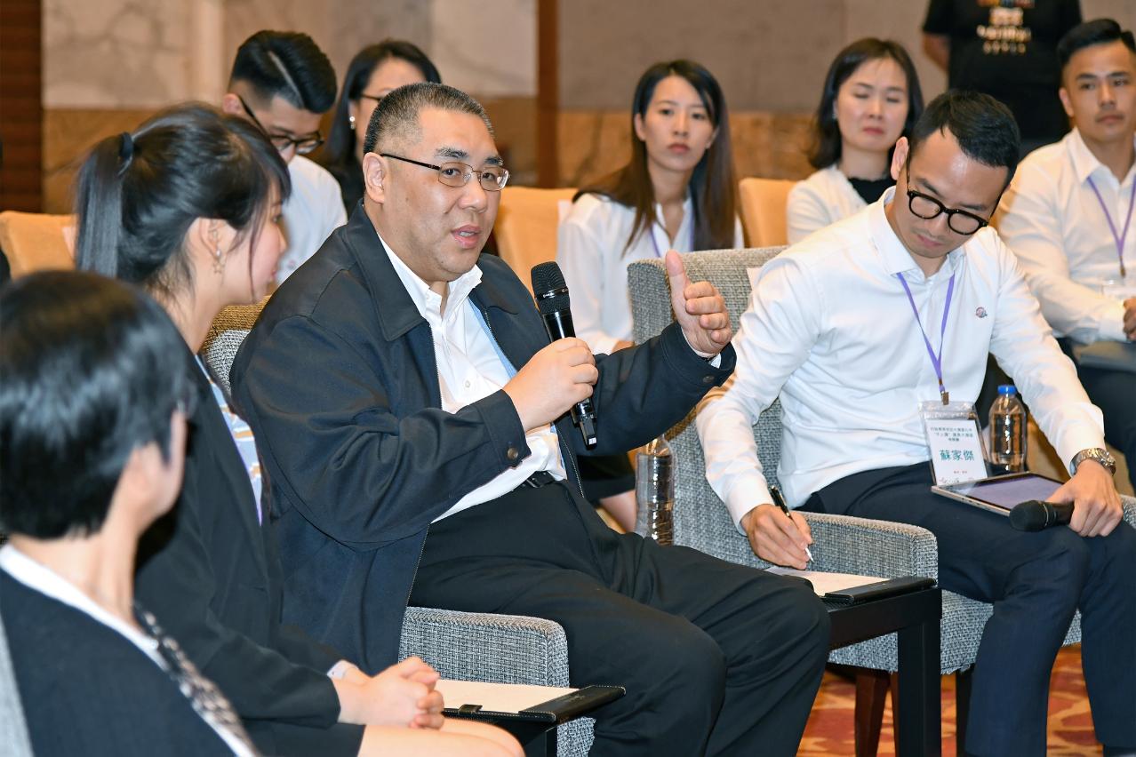 因應年青人關心大灣區發展和創業機遇,行政會委員廖澤雲在交流會上分享自己多年的營商經驗,認為創業創新的同時亦要考慮可持續發展,在抓緊機遇的過程中,還要建立自己的信用和人脈關係。談可持續性發展的重要性他又鼓勵年青人將目光多投放在科技創新和應用方面。