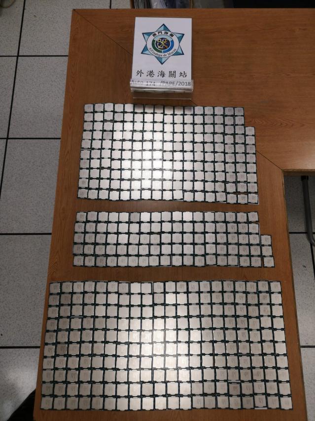本月9日,一輛粵澳兩地牌私家車經關閘口岸進入澳門時,經海關風險評估系統分析,被判斷為須接受檢查。關員檢查當場發現,私家車車尾載有大批未經申報的美容用品,共187盒,約值澳門幣2萬2千元。經翻查紀錄,該駕駛者亦曾於2016年因攜帶未經申報及檢疫肉類入境而被起訴。另外,一名香港女性旅客於本月10日經外港客運碼頭入境時,關員發現其神色有異,且衣服形狀不自然,經檢查,發現其身上藏有456枚未經申報之電腦中央處理器,有人供稱該批物品購自香港,約值港幣20萬元。