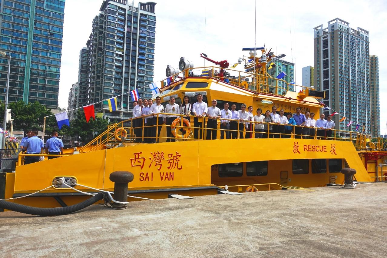 海事及水務局轄下的新救援船“西灣號”救援船祈福儀式於今(11)日下午3時在政府船塢進行,儀式由運輸工務司司長羅立文及海事局局長黃穗文主禮。局方早前已對“西灣號”救援船進行一系列船隻性能及航行的相關測試,正式投入運作後將負責澳門機場附近海面的戒備和搜救工作。