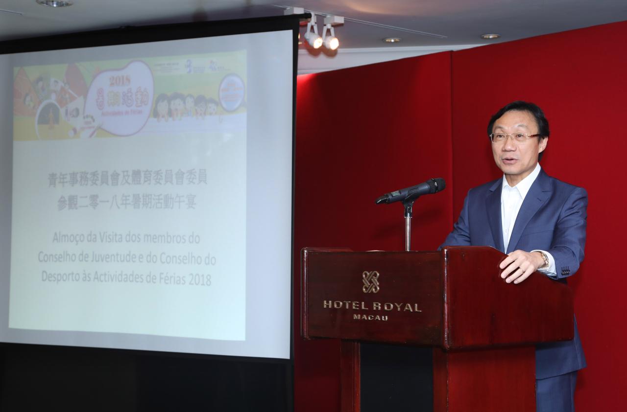 教育暨青年局與體育局繼續合作,於2018年7月至8月期間為澳門兒童及青少年學生提供豐富多采的暑假活動。為增進青年事務委員會及體育委員會之間的交流,並讓委員瞭解暑期活動的開展情況,社會文化司司長譚俊榮於7月25日設午宴招待兩會委員,而主辦單位安排委員於午宴後視察了部分暑期活動。