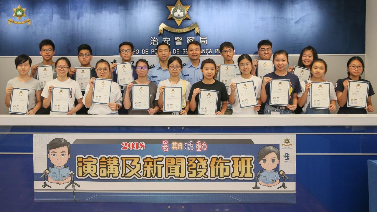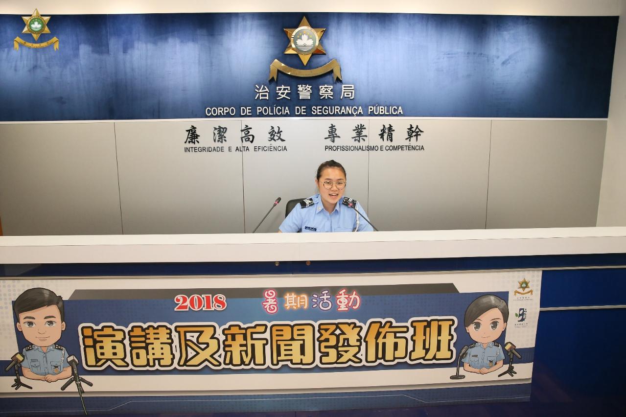 治安警察局與教育暨青年局合作,在2018年暑期活動推出「演講及新聞發佈班」,讓青少年認識警方新聞發言人的工作和學習演講的技巧。