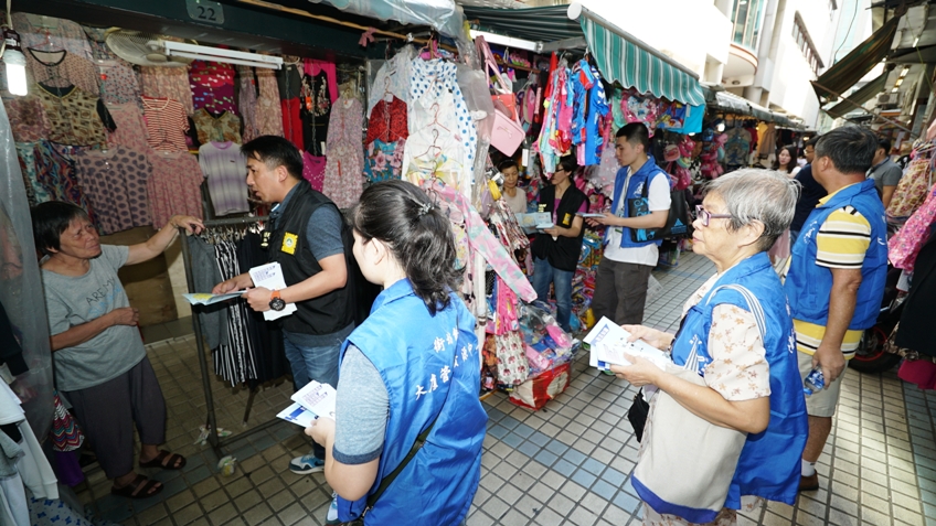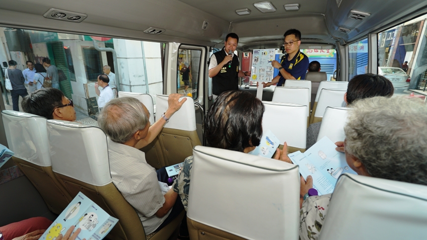 司警局聯同板樟堂營地街區坊眾互助會及“司警局大廈防罪之友”會員於8月7日下午在營地大街、草堆街、關前街、十月初五日街一帶低窪地區向居民和商戶宣傳“颱風期間風暴潮低窪地區疏散撤離計劃”及介紹防災知識,講解當颱風期間風暴潮來襲,導致低窪地區嚴重水浸時,民防單位制定的安全撤離路線及撤離時應注意的事項,並呼籲居民屆時應儘早離開地下室及地下停車場,以及儘快前往安全避險地方或就近的避險中心。