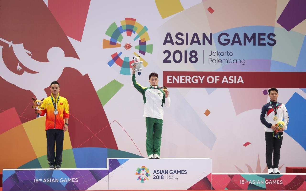 在印尼參加『第十八屆亞洲運動會』的中國澳門體育代表團,今日(21日)在武術項目獲取獎牌,黃俊華(HUANG JUNHUA)在男子南拳及南棍全能項目以總分19.43獲得金牌,是體育代表團今屆亞運會首面獎牌,也是澳門代表團參加亞運會以來第二面金牌。
