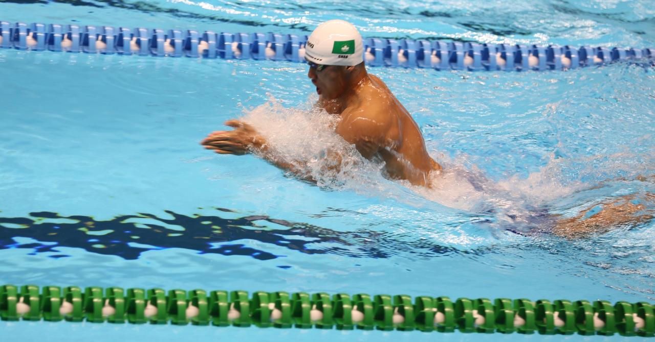游泳賽事,黃文慧(VONG ERICA MAN WAI)於女子50米仰泳,造出29秒87的成績,打破了澳門紀錄;關綺晴(KUAN I CHENG)於女子100米蝶泳,以1分07秒94完成賽事;敖博文(NGOU POK MAN)和劉崑峰(LAO KUAN FONG)於男子50米自由泳,分別游出23秒67及24秒50的成績,上述項目惜未能晉級。在女子4 x 200米自由泳接力預賽,黃文慧、徐穎彤(CHOI WENG TONG)、龍子惠(LONG CHI WAI)及譚志欣(TAN CHI YAN)隊伍游出9分03秒42的成績晉級決賽,隊伍最後以第7名完成賽事;周文顥(CHAO MAN HOU)於男子200米蛙泳預賽造出2分15秒34的成績,打破澳門紀錄並晉級決賽,於決賽中以第7名完成賽事。