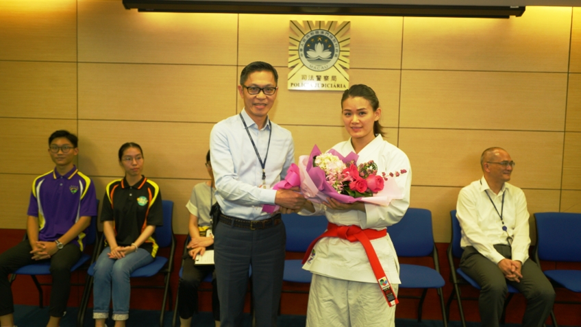 第十八屆亞洲運動會於日前圓滿閉幕,司法警察局刑事偵查員蘇瑞林首次代表澳門特區出戰,並於女子空手道個人型項目中勇奪銀牌,為澳爭光。蘇瑞林的奮鬥經歷實在值得青少年學習,因此,司警局於9月7日在總部大樓舉辦了“第十八屆亞洲運動會澳門得獎運動員分享會”,以“歷程、克服、勵志”為主題,邀請蘇瑞林與“滅罪小先鋒種子計劃”及“社區安全青年領袖計劃”學員互動交流,分享心得。