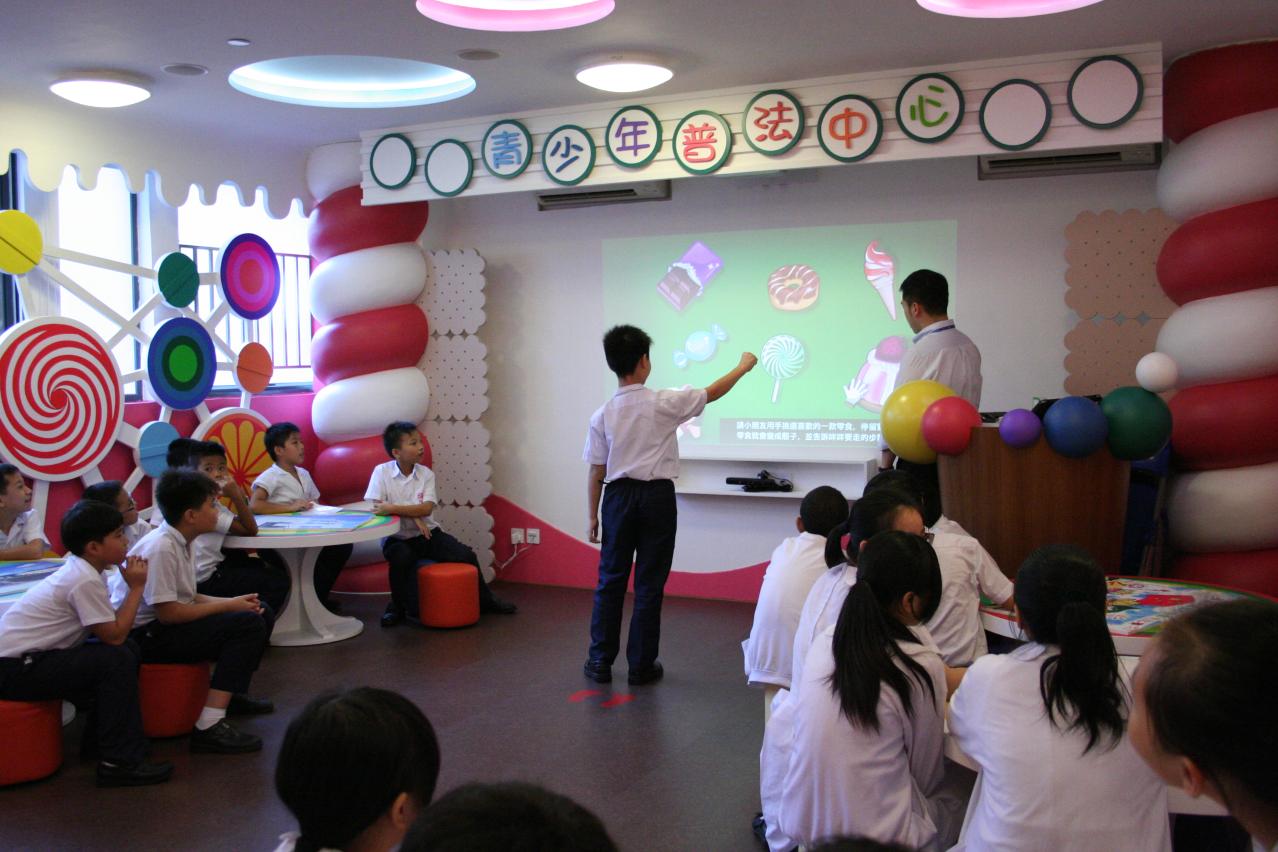 法務局亦設有青少年普法中心可讓學校預約進行參觀體驗活動,活動同樣按年級分為不同主題,到訪的小學生會在工作人員的帶領下,穿越糖果教室、森林樂園、迷宮、時光隧道、基本法遊戲室及多媒體室等多個主題空間。透過互動電腦遊戲、迷宮解難、立體拼圖及專題講解等多元化活動,對主題法律資訊留下深刻印象。
