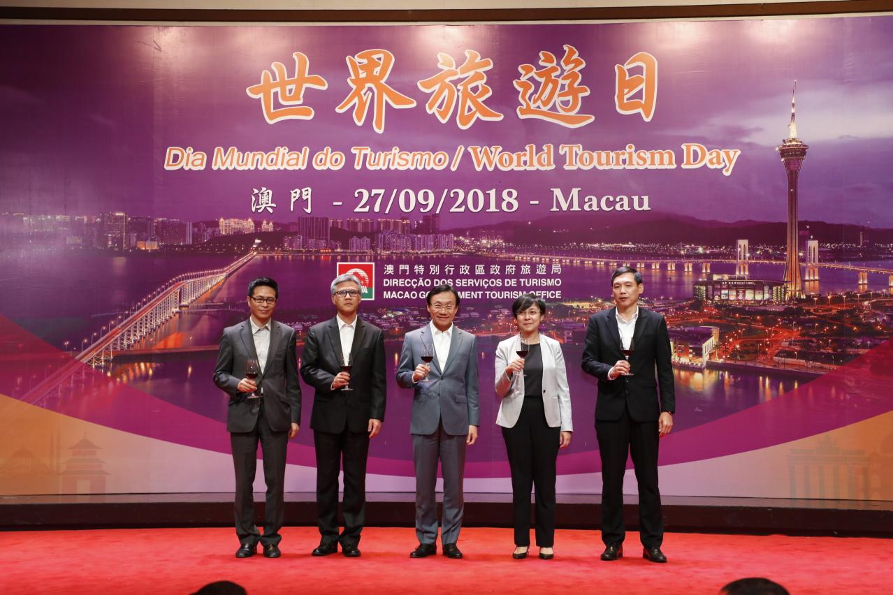 社會文化司司長譚俊榮出席今日晚宴活動支持“世界旅遊日”,與旅遊業界及傳媒代表等數百位嘉賓同慶一年一度的全球旅遊盛事。旅遊局局長文綺華致詞時感謝澳門旅遊同業多年的支持。晚宴上,由六家大型旅遊企業呈獻以“2018澳門美食年”為題的表演環節,展示澳門多元化的旅遊休閒元素及旅遊從業員多才多藝的一面。