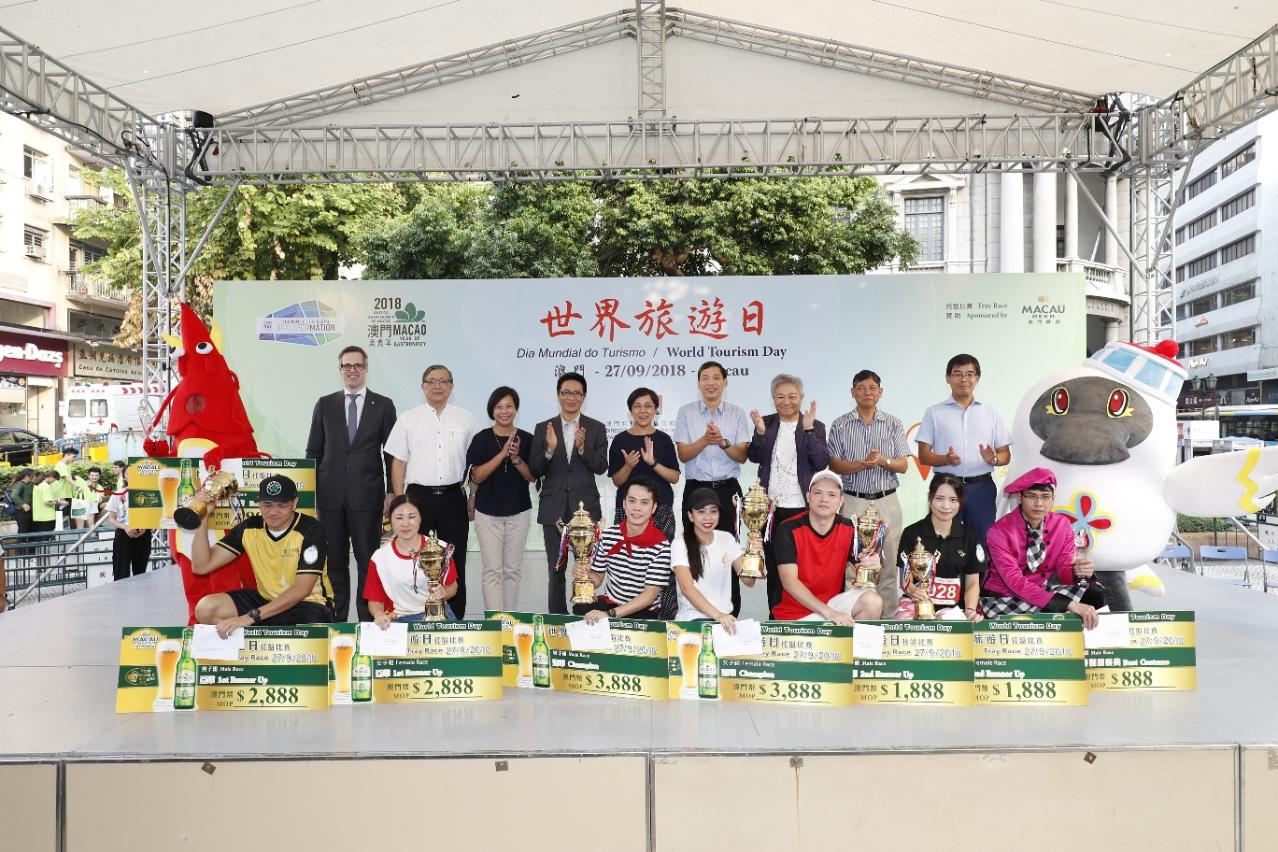 一年一度專為旅遊業前線人員舉辦的傳統托盤比賽於下午舉行,一眾參加者在大三巴牌坊出發,穿越世界遺產“澳門歷史城區”的街道,跑到議事亭前地的終點,沿途有旅客駐足拍照甚至替參加者打氣,現場氣氛熱烈。