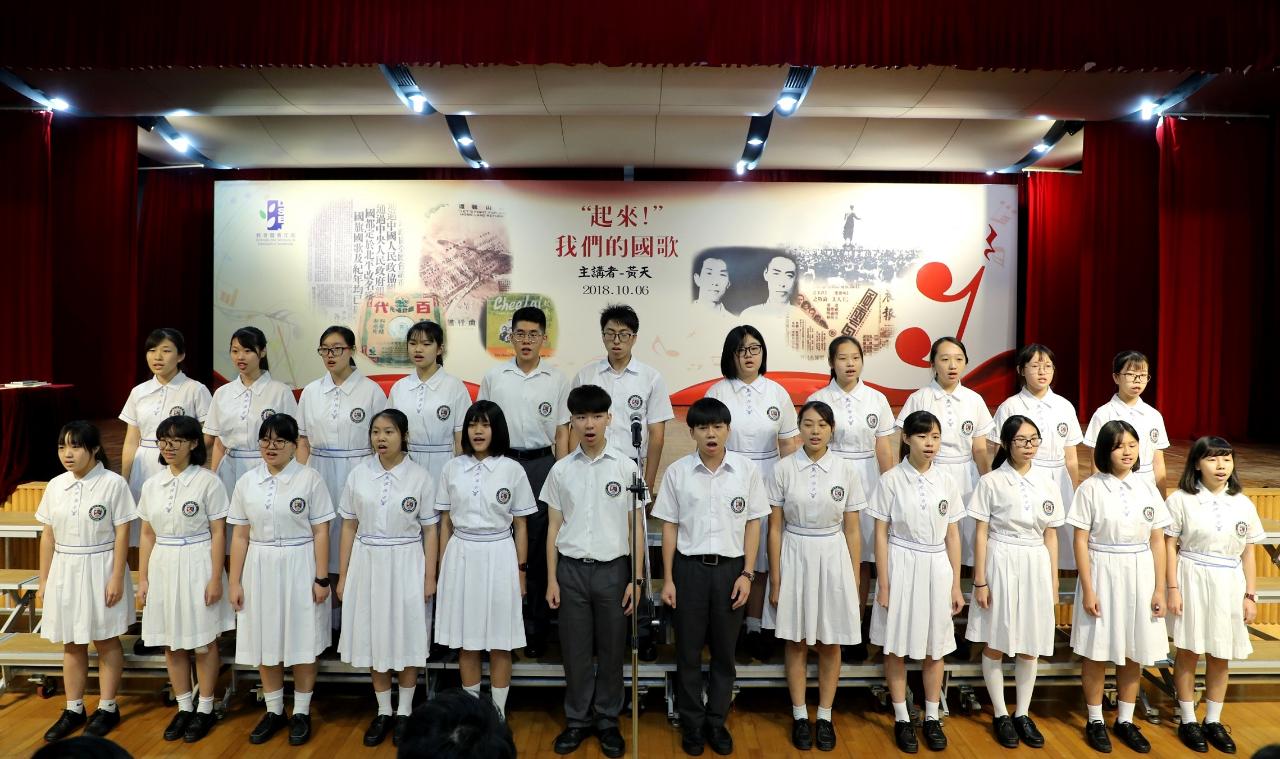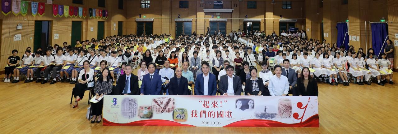 為讓澳門教學人員及學生了解國歌的歷史和精神內涵,培養其愛國主義情懷和增強對國家認同感,教育暨青年局於2018年10月6日下午假澳門浸信中學舉辦“‘起來!’我們的國歌”講座,邀請了中日關係史專家黃天先生擔任主講嘉賓,出席的中學生、學生會代表及教學人員多達600人,教青局副局長龔志明、代副局長江毅,以及多位主管人員同場參與。
