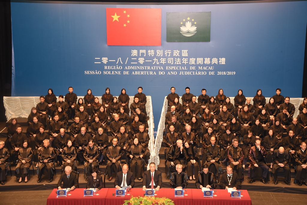 澳門特別行政區2018/2019年司法年度開幕典禮,於10月19日下午3時30分假文化中心小劇院隆重舉行。典禮由行政長官崔世安主持,立法會主席賀一誠、終審法院院長岑浩輝、行政法務司司長陳海帆、檢察長葉迅生、推薦法官的獨立委員會主席劉焯華和律師公會理事會主席華年達在主禮臺就座。