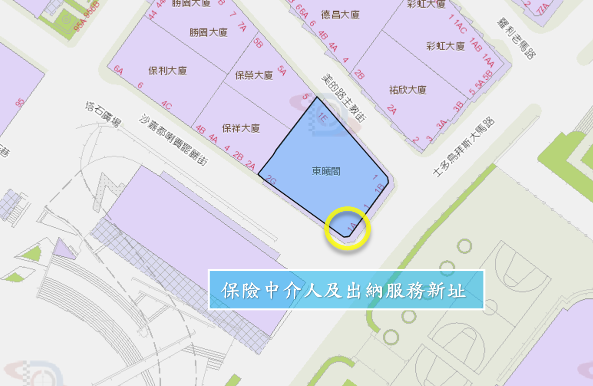 由2018年11月5日起,澳門金融管理局“保險監察處保險中介人服務櫃檯”和“貨幣發行及財務處出納櫃檯”將遷往澳門士多鳥拜斯大馬路1號A東曦閣地下(澳門金融學會旁)辦公。有關個人/法人保險中介人牌照申請、領取、資料更新、續期、繳交登記費、持續專業培訓申報、與保險中介業務相關的查詢及投訴等服務以及金管局所有出納服務均將遷往該址繼續運作。位於東望洋斜巷24及26 號金管局行政大樓的中介人服務櫃檯及出納服務將於2018年11月5日起停止運作,市民如欲查詢新址資訊,可致電2856 8288、2822 1180(保險中介人服務)或8297 2800(出納服務)查詢,亦可瀏覽金管局官方網頁(www.amcm.gov.mo)。