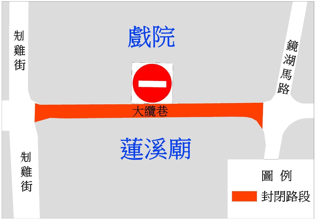 因應新橋區坊眾互助會舉辦恭祝華光寶誕活動,11月2日(周五)至6日(周二),介乎雞街與鏡湖馬路之間的一段大纜巷部份時段實施臨時交通安排(詳見下表),交通事務局呼籲駕駛者留意。