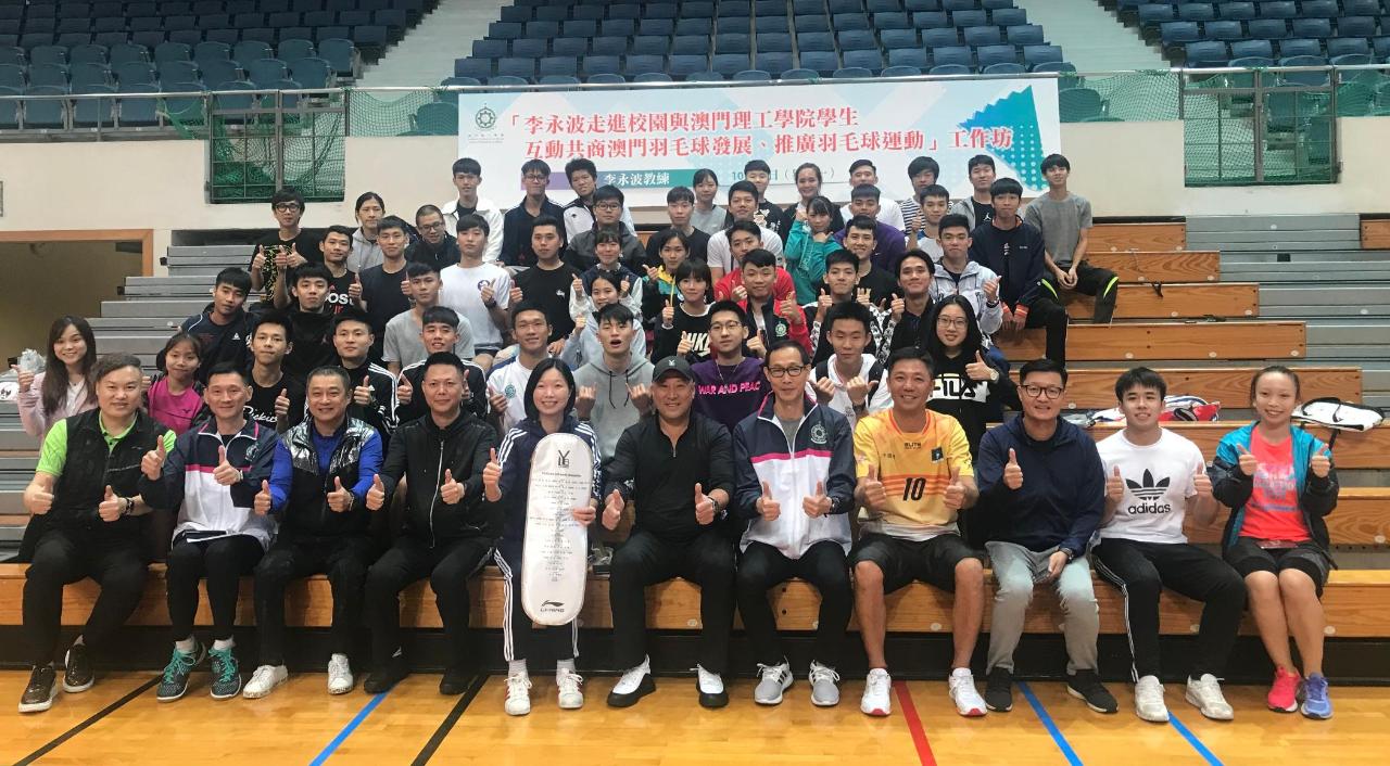 澳門理工學院於十月二十二日舉辦「李永波走進校園與澳門理工學院學生互動共商澳門羽毛球發展、推廣羽毛球運動」工作坊,由中國羽毛球協會副主席、中國奧委會專家委員會委員李永波主講,廣東省羽毛球協會副會長梁海清、理工學院副院長李雁蓮及近百名理工師生出席。工作坊上,李永波講述運動員及教練生涯的奮鬥歷程,寄語同學們定立一個長遠而有系統的計劃,為自己的成就和社會的發展造出應有的貢獻,深深感動所有出席人士。