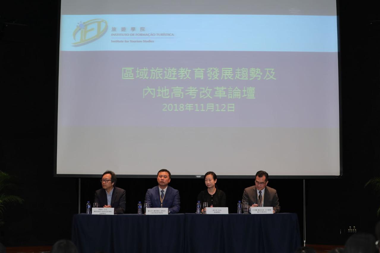 由旅遊學院舉辦的『區域旅遊教育發展趨勢及內地高考改革論壇』於11月12日在旅遊學院圓滿舉行,內地多個省市教育局、招生辦公室負責人及本地高校代表出席。與會者探討了區域旅遊教育發展,以及面對內地高考改革澳門高校內地招生在工作上的新安排等問題。與會者認為區域旅遊,尤其是大灣區城市的旅遊合作有很大發展空間。